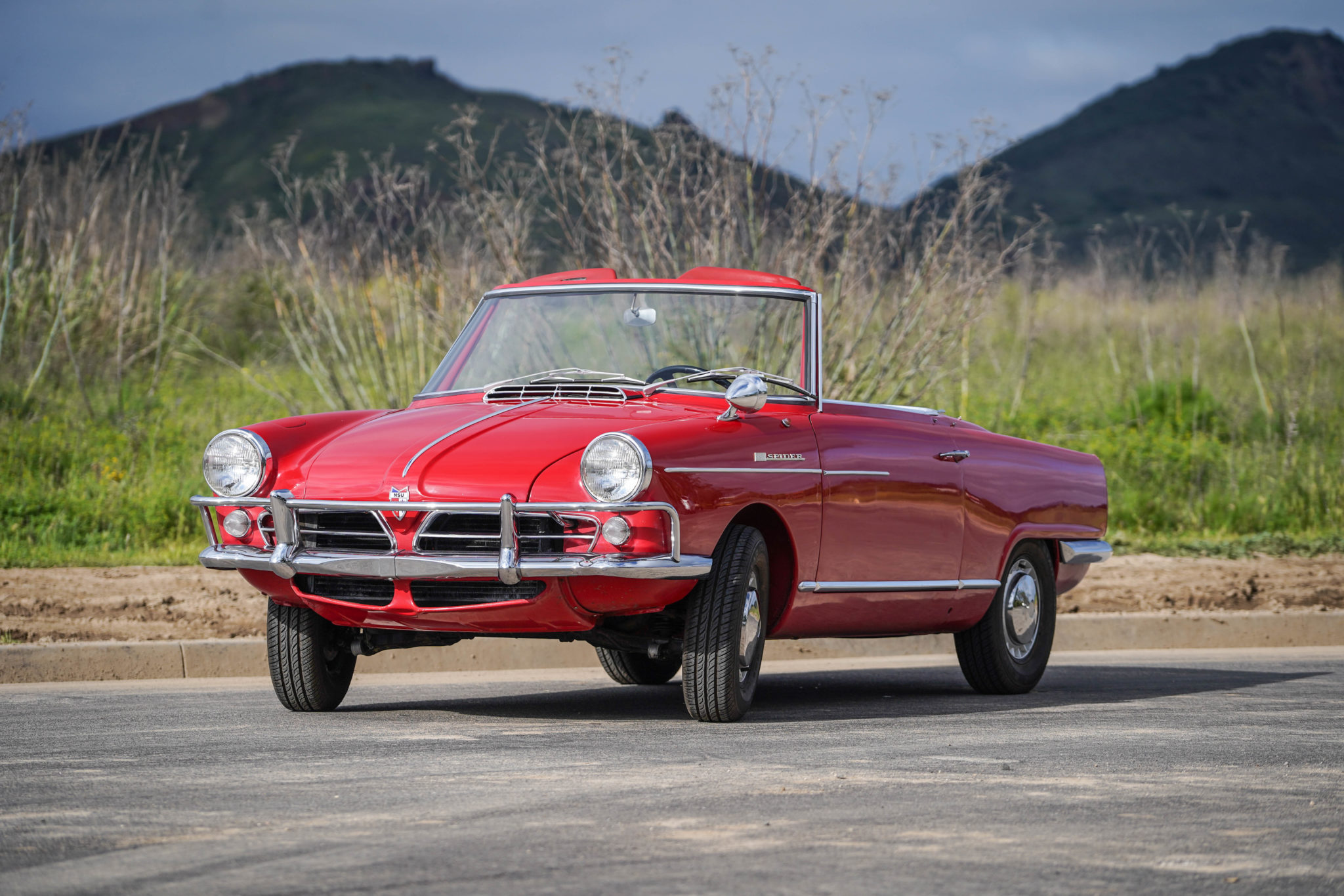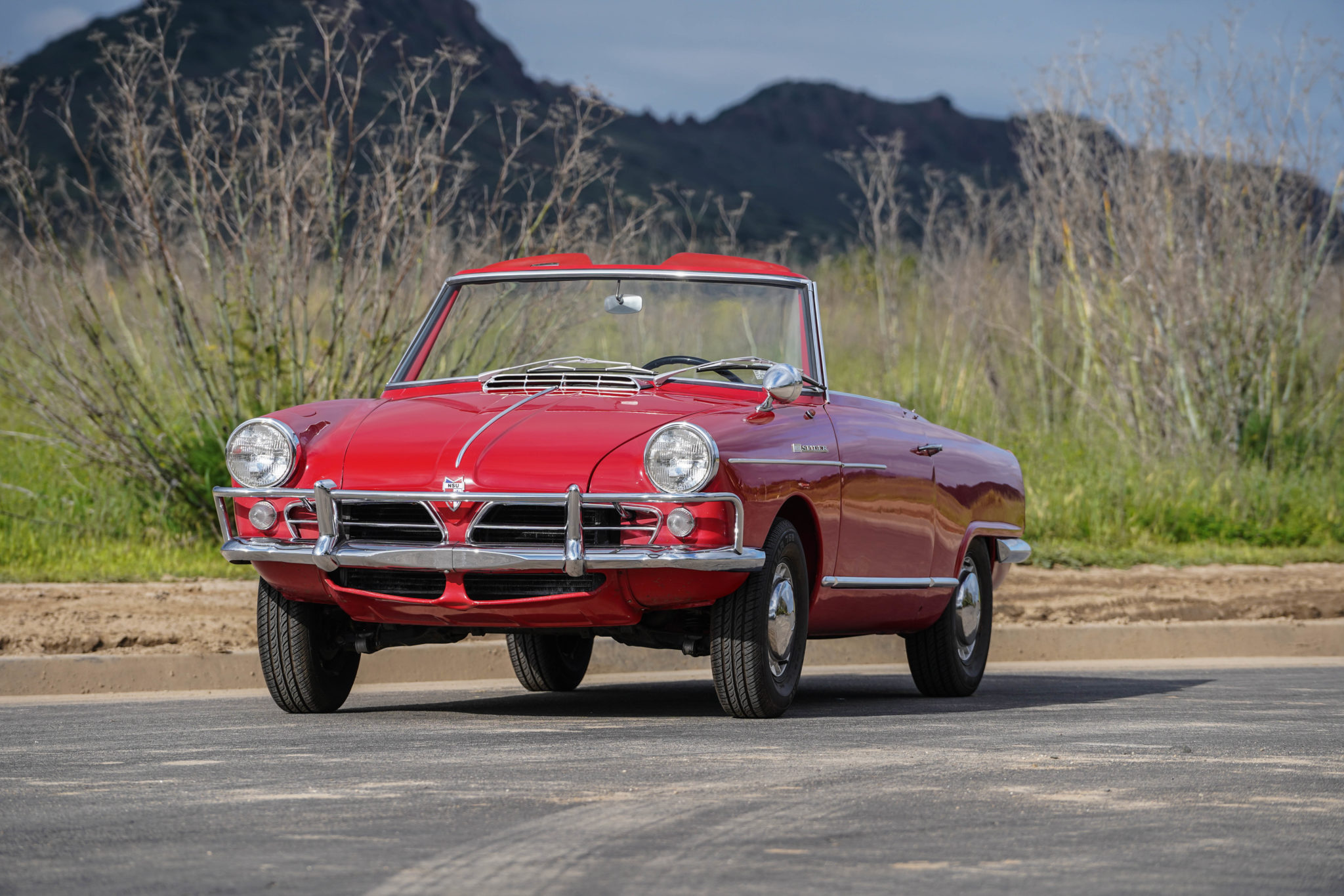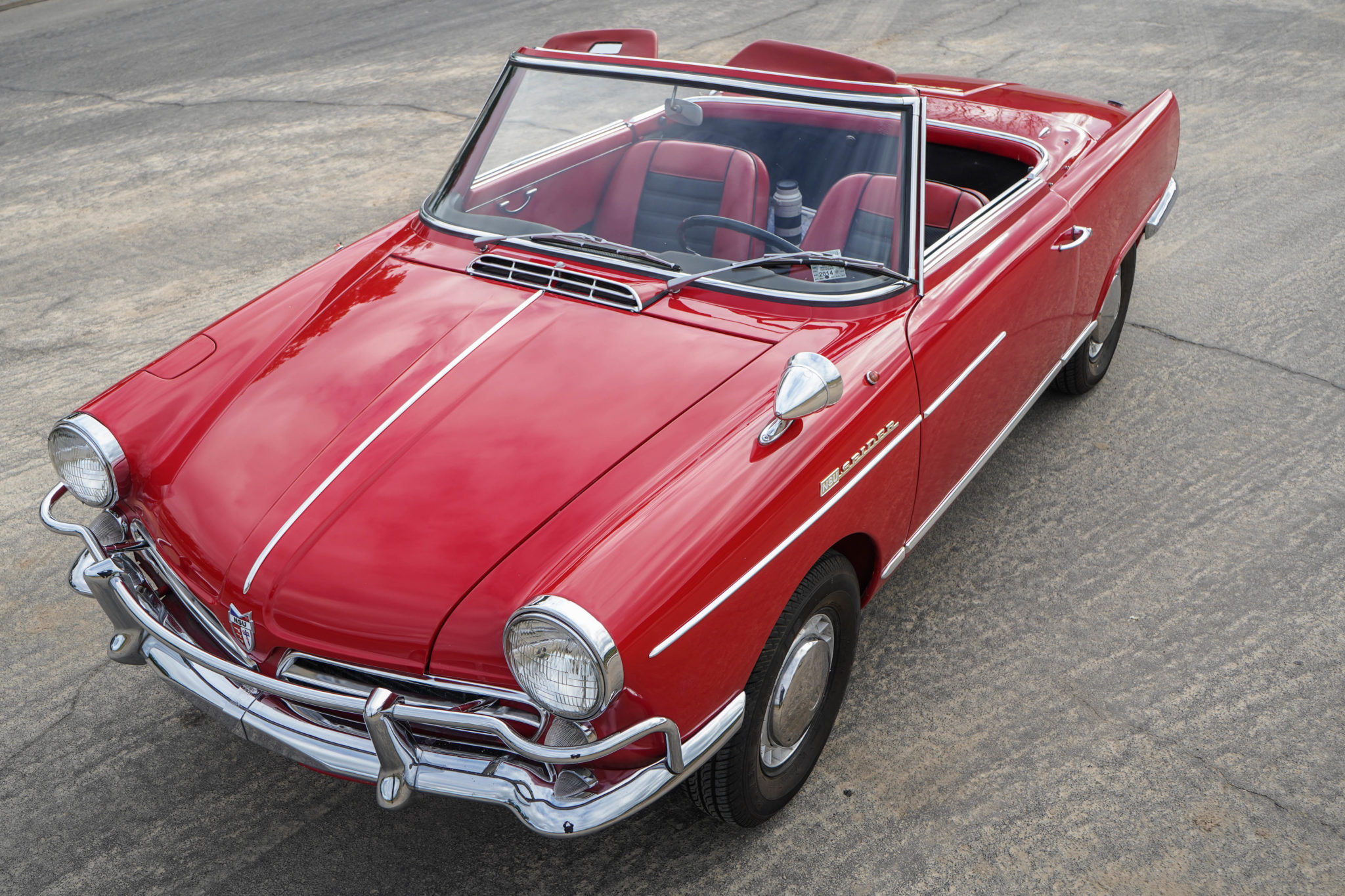 The 155″-long convertible features both front and rear trunks thanks to the rear-mounted rotary engine’s small dimensions. Steel 12″ wheels are fitted with factory wheel covers and Kumho tires that measure 155/80. The suspension is shared with the Prinz 1000 sedan, including an independent front with upper and lower control arms and coil-sprung semi-trailing arms at the rear. Braking is handled by four-wheel drums.