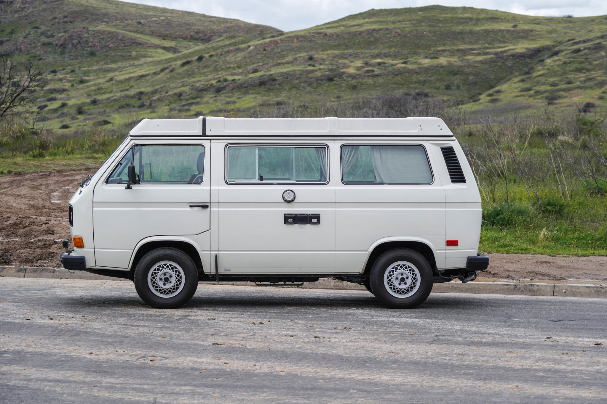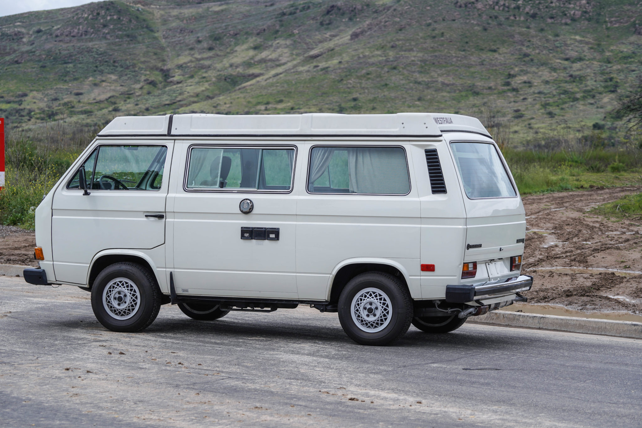 14″ steel wheels are fitted with mesh-style wheel covers and Volkswagen center caps, and the mounted American Classic tires measure 205/75. Braking is handled by front discs and rear drums, the latter of which are worn according to an included invoice.