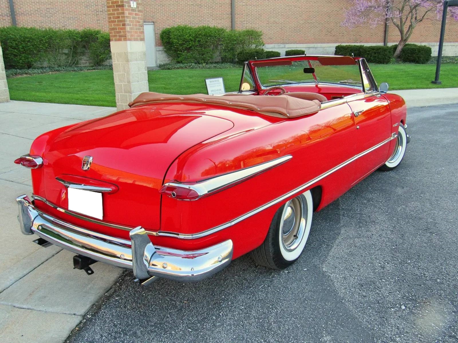 Tan-painted 15″ wheels wear chrome beauty rings and hubcaps, and are mounted with 215/65 Toyo Extensa A/S wide-whitewall tires dated 2016. Suspension modifications include a Heidts front end as well as coilovers at all four corners. Power-assisted steering and front disc brakes have been added.