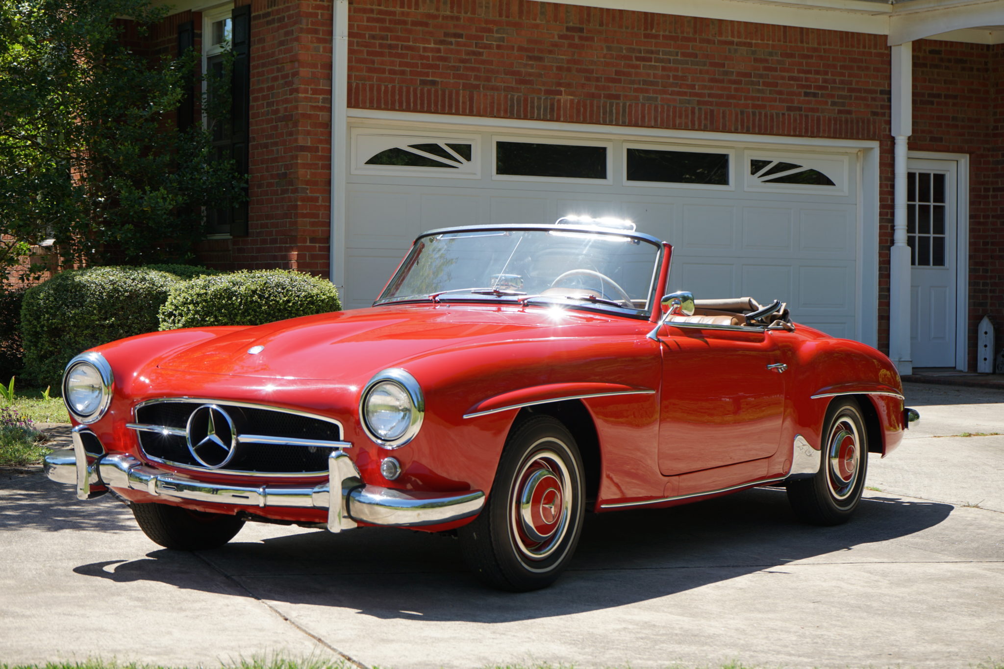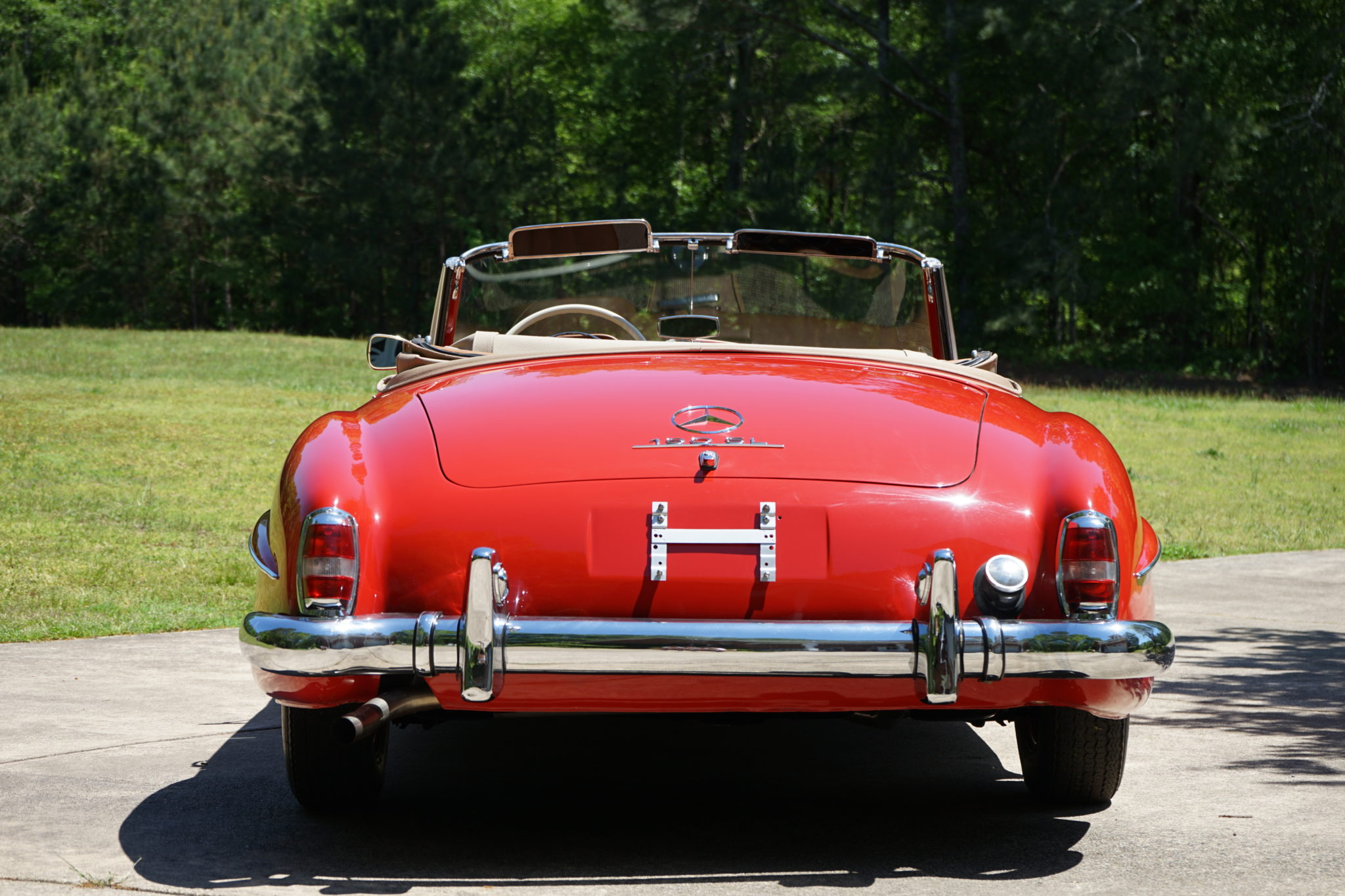 13″ steel wheels wear polished and paint-matched hubcaps and 175-13 Michelin thin whitewall radial tires. Factory equipment includes double-wishbone front suspension, rear swing axles with coil springs, and power-assisted drum brakes.