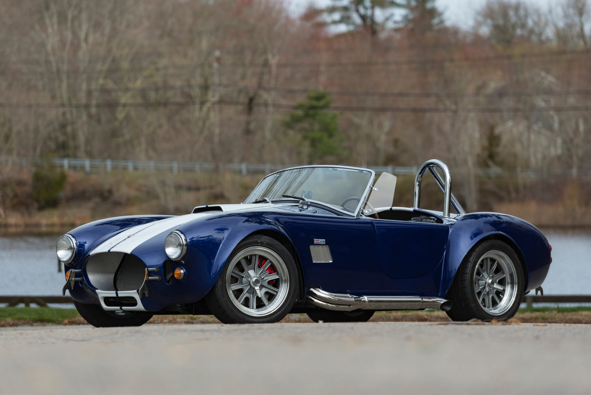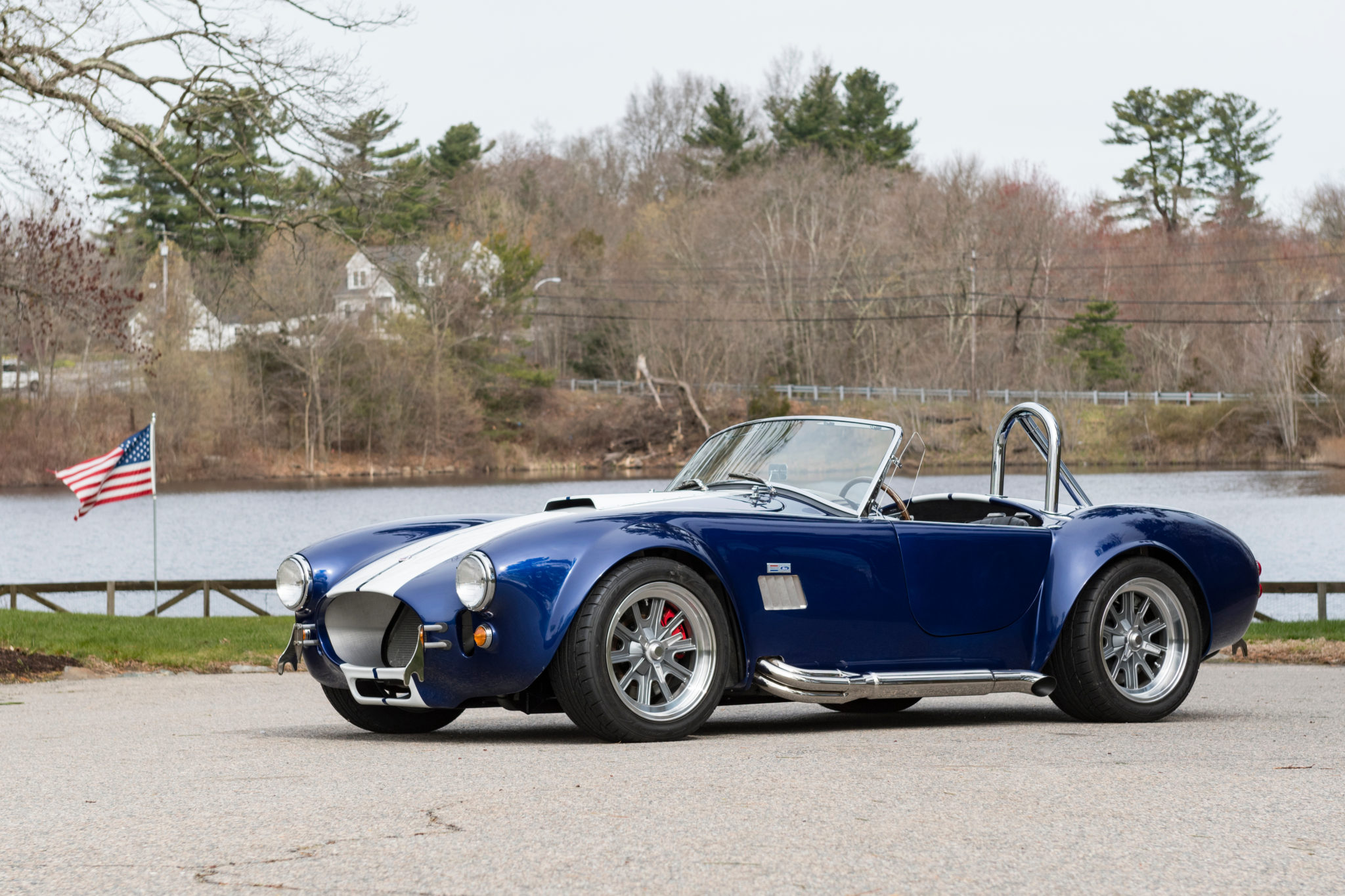 17″ Halibrand-style wheels feature faux knock-off spinners and wear Nitto tires measuring 245/45 up front and 315/35 out back. The car is equipped with four-wheel power disc brakes, power steering, and an independent rear suspension.