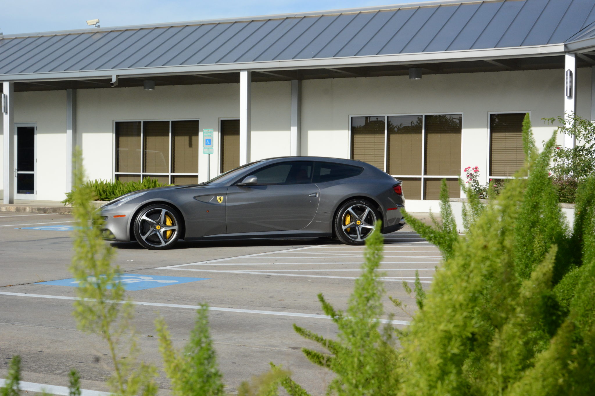 The factory 20″ wheels were replaced with a set from another FF at Ferrari of Houston in February 2012. The right front wheel was later replaced in 2013, and all four were refinished in 2016. A set of Michelin Pilot Super Sport tires are currently mounted, and braking is handled by Ferrari Carbon Ceramic brakes with optional yellow-finished calipers.
