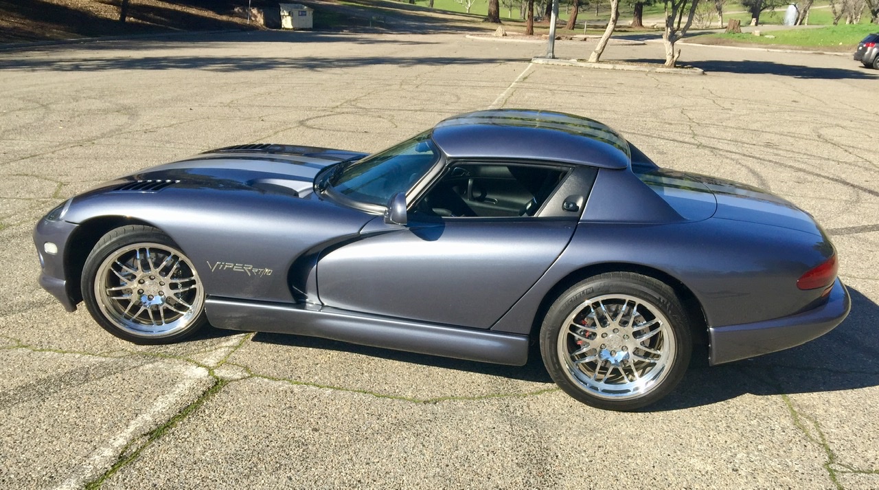 Chrome-finished 19” CCW billet wheels feature Viper centers and are mounted with 295/30 front and 345/30 rear Michelin Sport Pilot 2 tires. Steel-braided brake lines have been installed along with EBC rotors and pads.