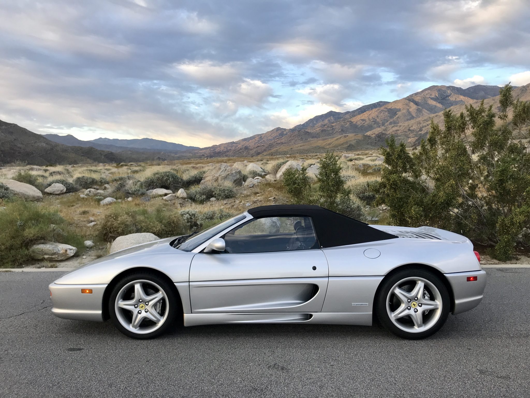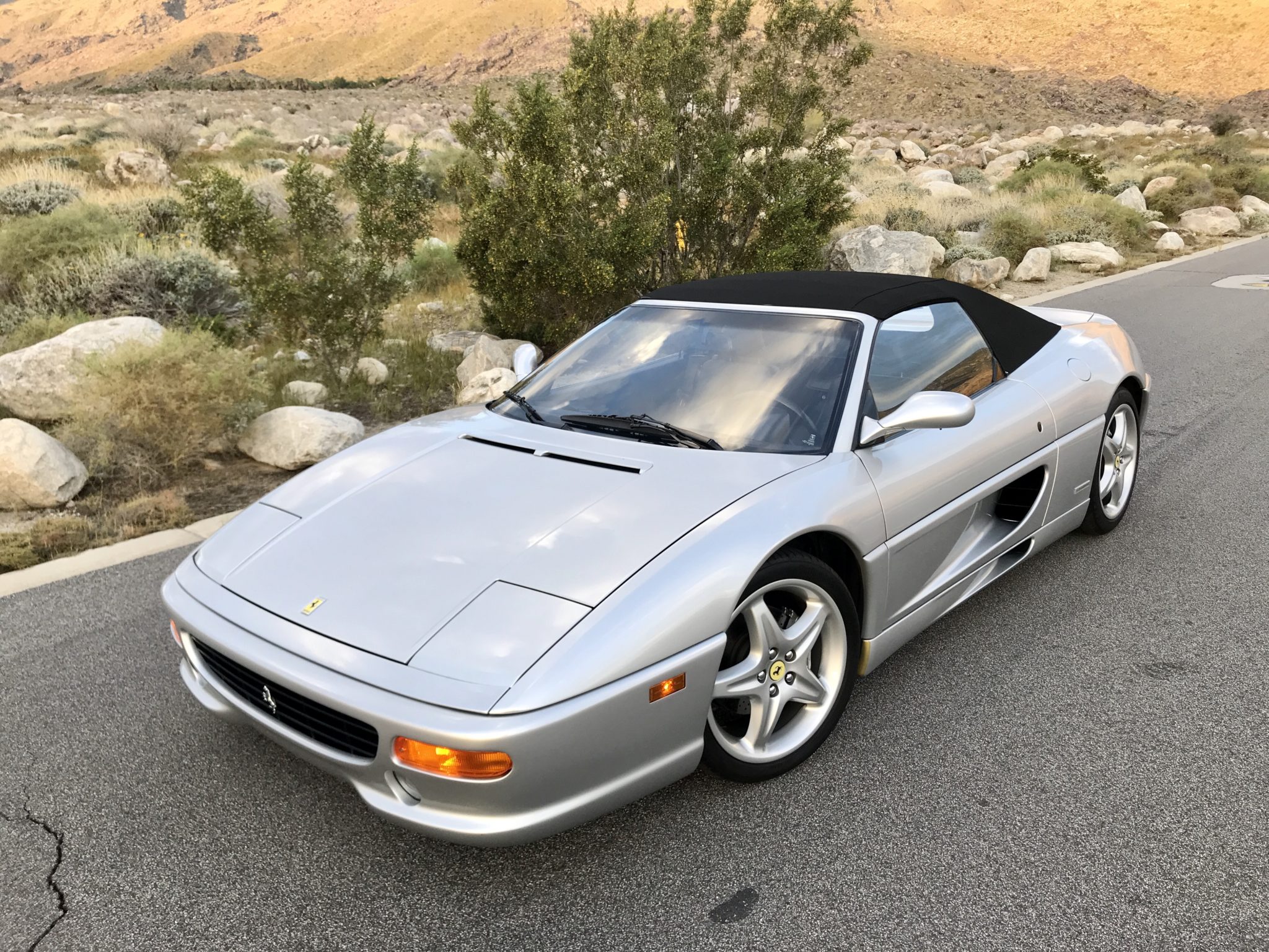 Factory 18” five-spoke alloy wheels are wrapped in Continental Extreme Contact tires sized 225/40 in front and 265/40 in the rear. The power-retractable black convertible top had its pistons and pump replaced in 2018, and a video of the top in operation can be seen here.