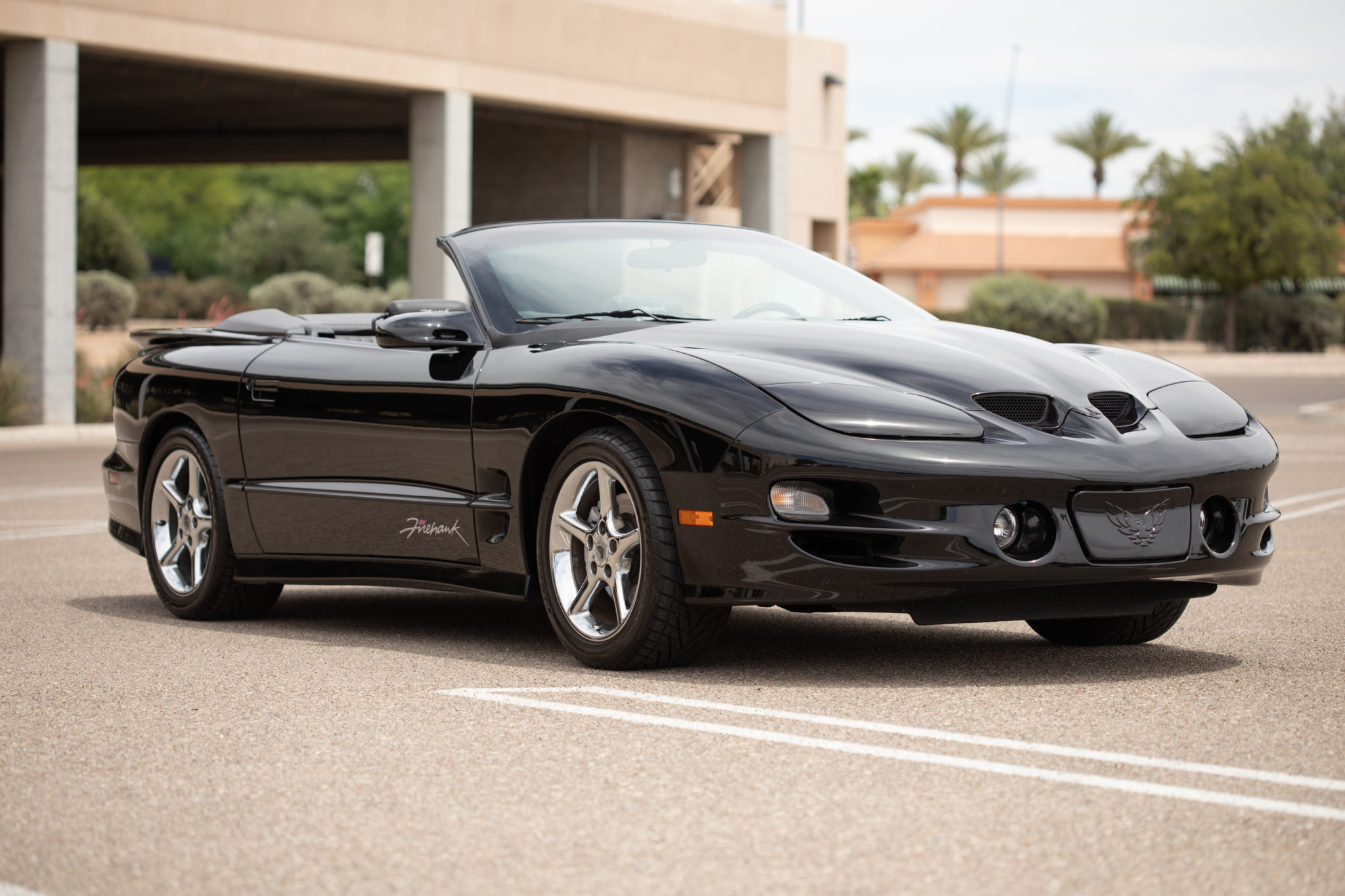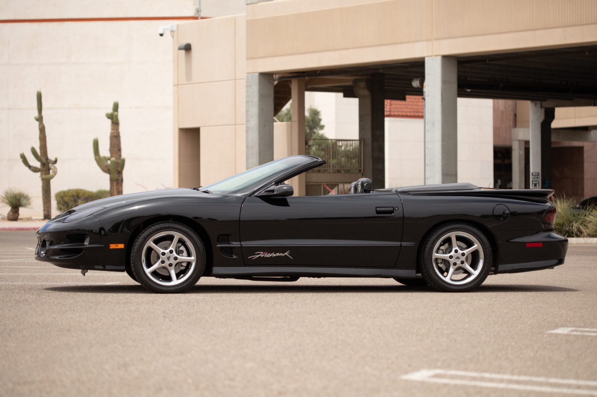 Chrome five-spoke 17″ alloy wheels wear 275/40 Firestone Firehawk SZ50 tires. The SLP package featured a Bilstein suspension.