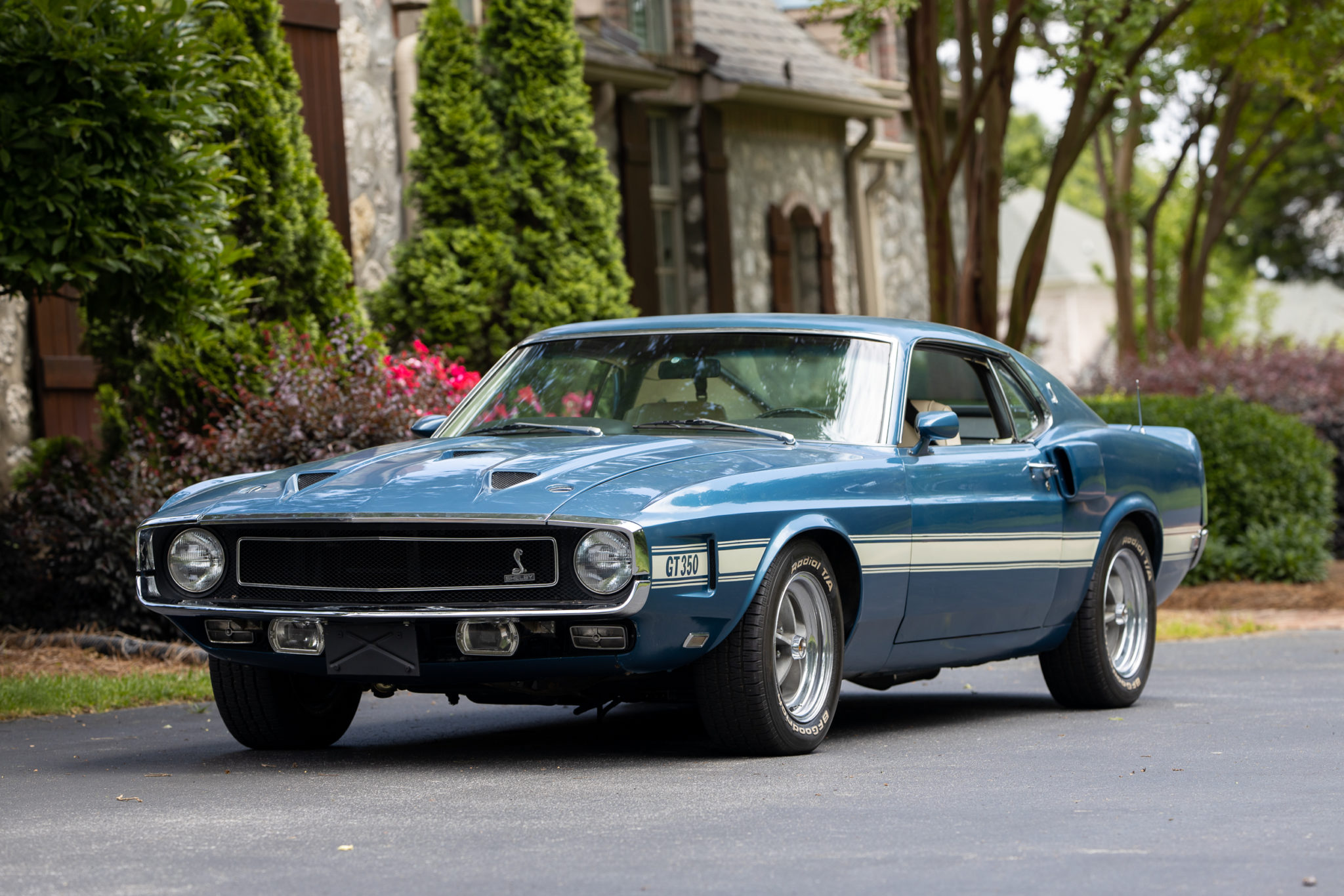 Shelby wheels wear Cobra center caps and BFGoodrich Radial T/A tires fitted by the current owner. Power-assisted steering and front disc brakes were optioned when new.