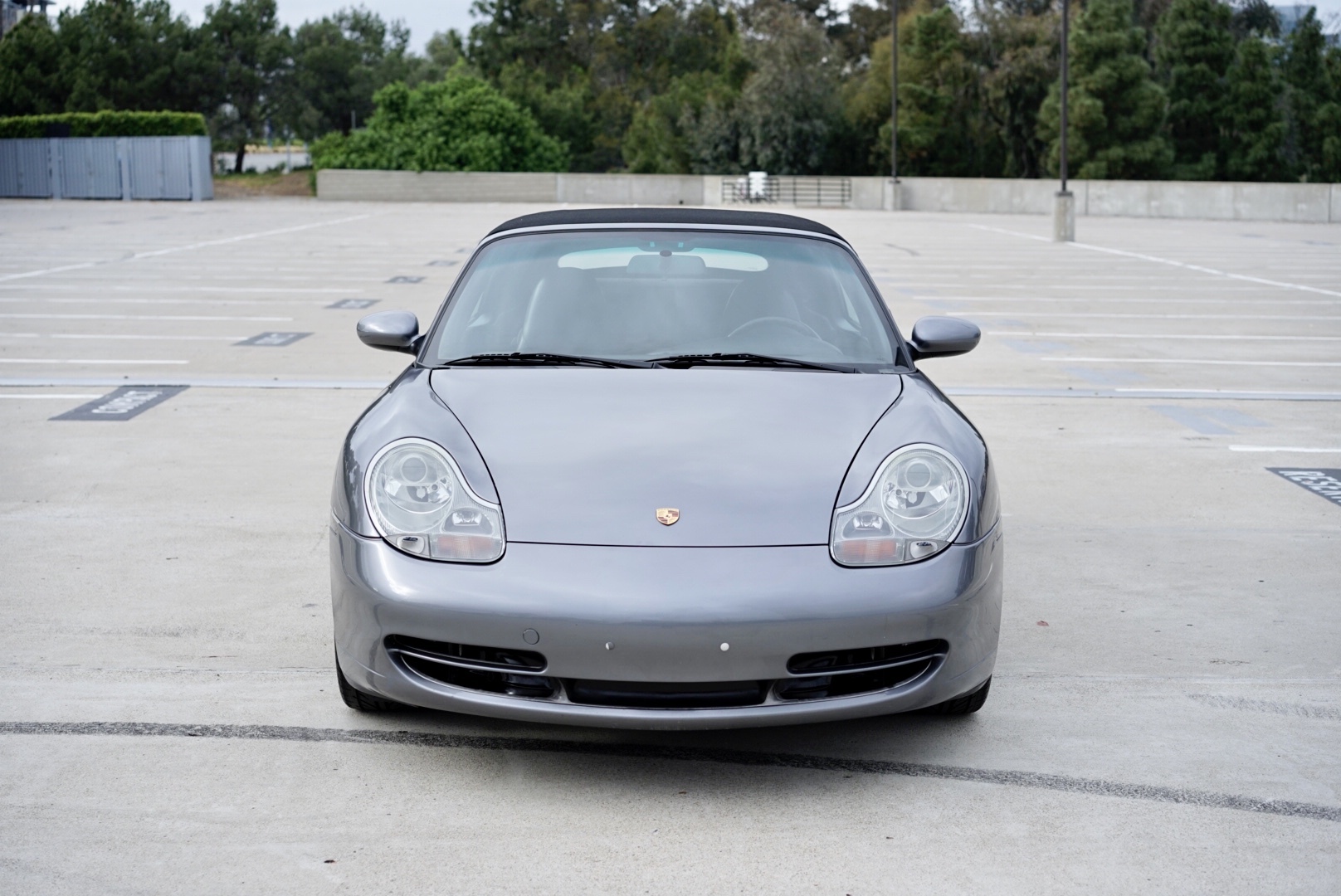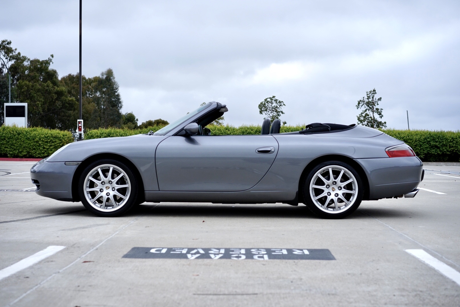 Staggered-width 18″ Sport Design wheels feature colored Porsche-crest center caps and wear 225/40 Hankook Ventus V12 Evo tires up front and 265/35 Falken Pro G5 Sport A/S tires out back. Black-finished calipers and cross-drilled rotors are equipped all around. The selling dealer states that an alignment was recently performed.