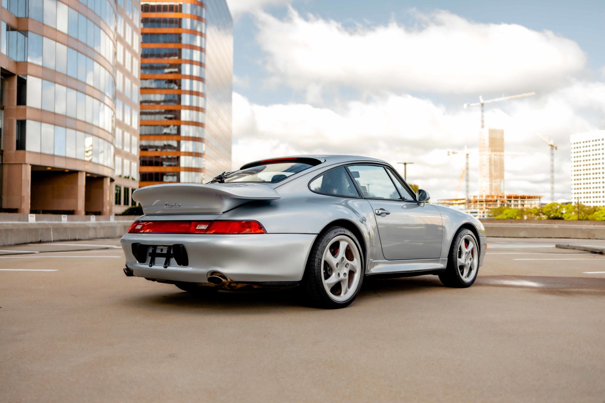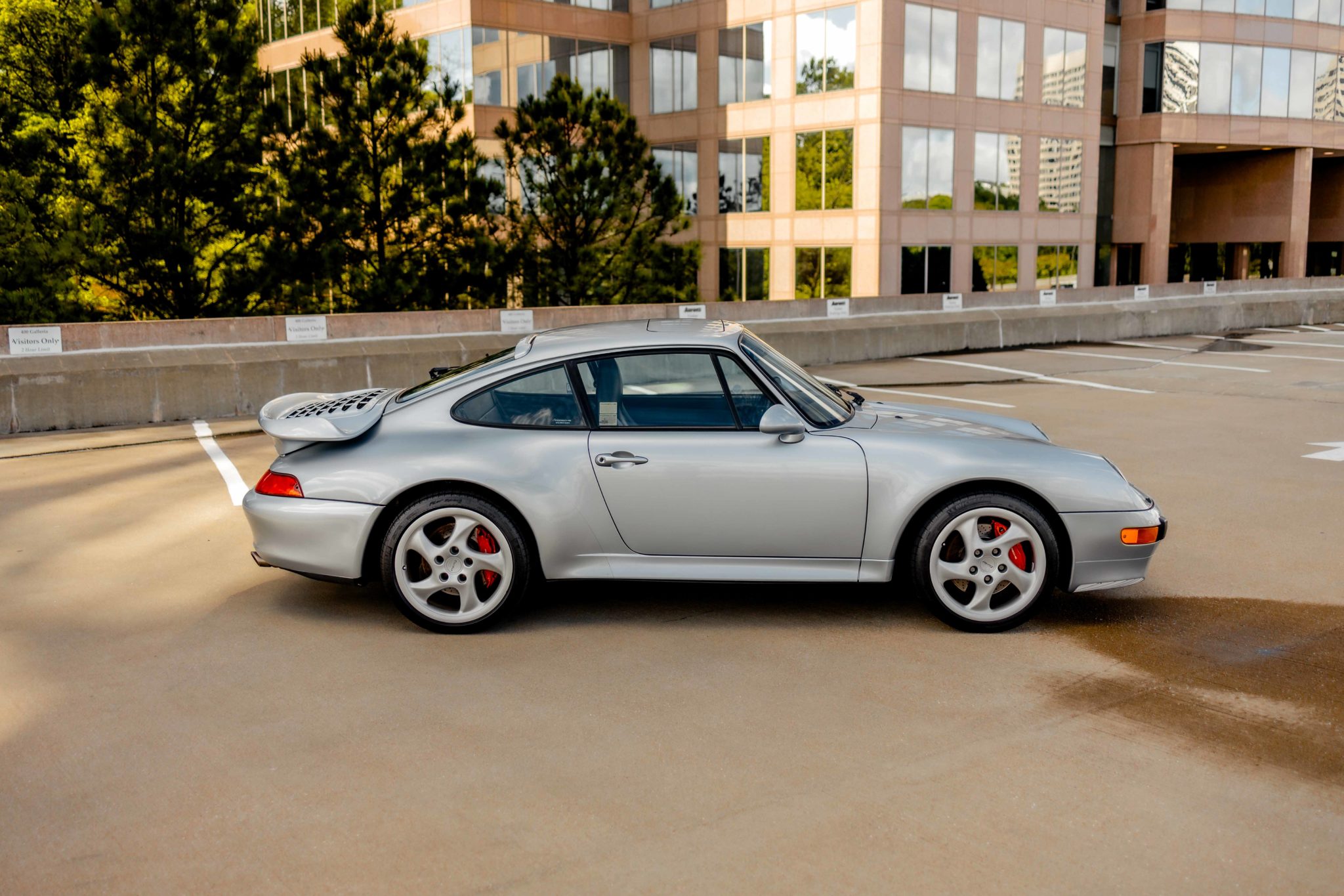 Factory 18″ wheels wear Michelin Pilot Sport tires, which the seller states were mounted approximately 300 miles ago and are sized 225/40 up front and 285/30 out back. The 993 Turbo came standard with red four-piston brake calipers, as well as cross-drilled and vented rotors all around.
