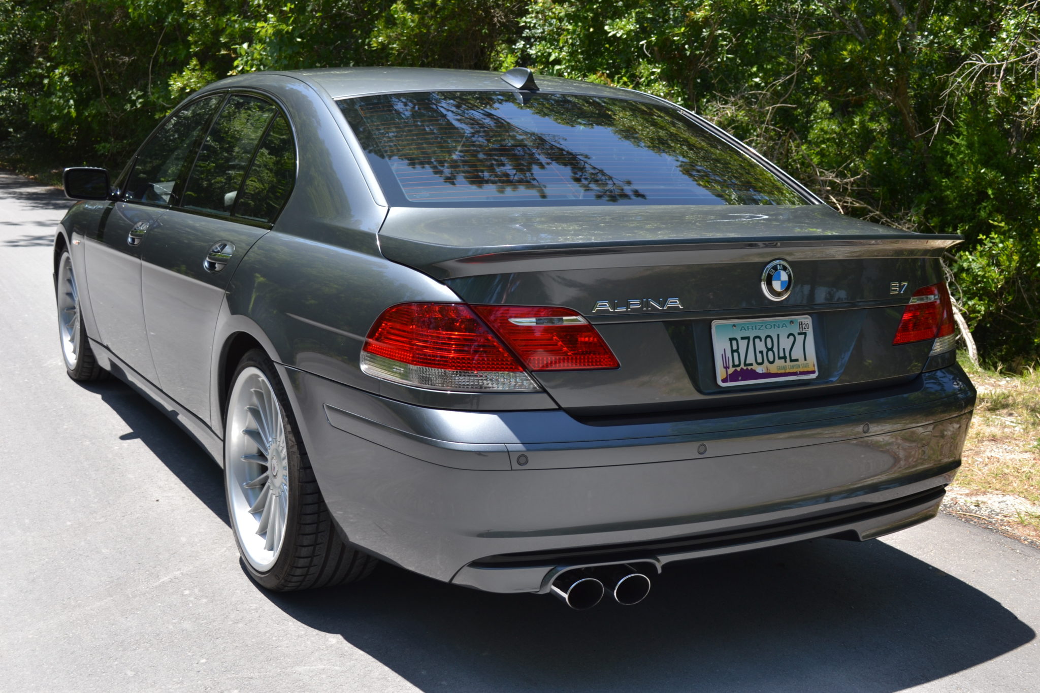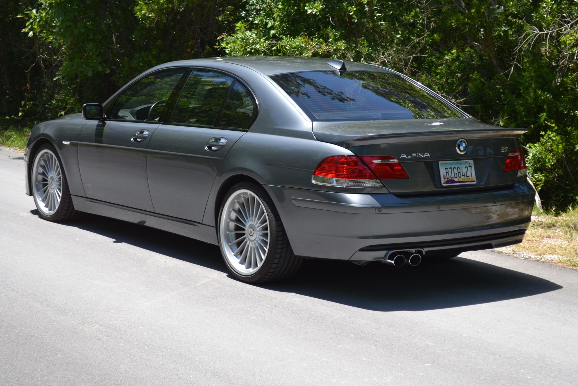 The B7 featured a revised, lowered suspension compared with the contemporary 750i. Turbine-style 20-spoke 21″ wheels were manufactured by BBS. Mounted with Continental tires, the wheels have been balanced for the seller and exhibit curb rash, as shown in the photo gallery below. The front brake rotors and pads are said to have been replaced during the seller’s ownership.