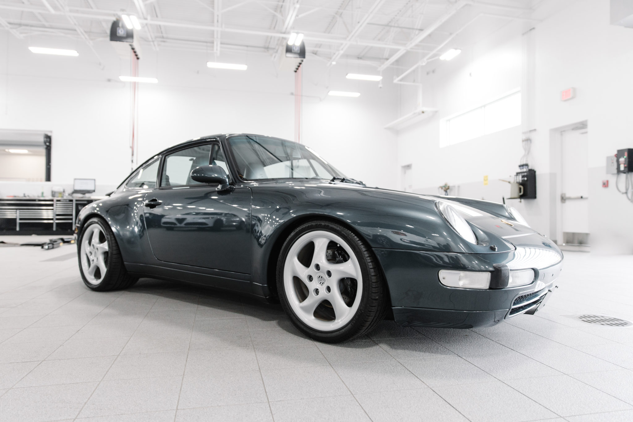 Staggered-width 18″ Turbo Twist wheels were fitted and wear Pirelli P Zero tires that were recently replaced. Bilstein coilovers have been added to the suspension resulting in a lower ride height. The factory brake system utilizes gloss-black calipers and cross-drilled rotors all around, and the seller states that an alignment and brake fluid flush were performed in May 2020.