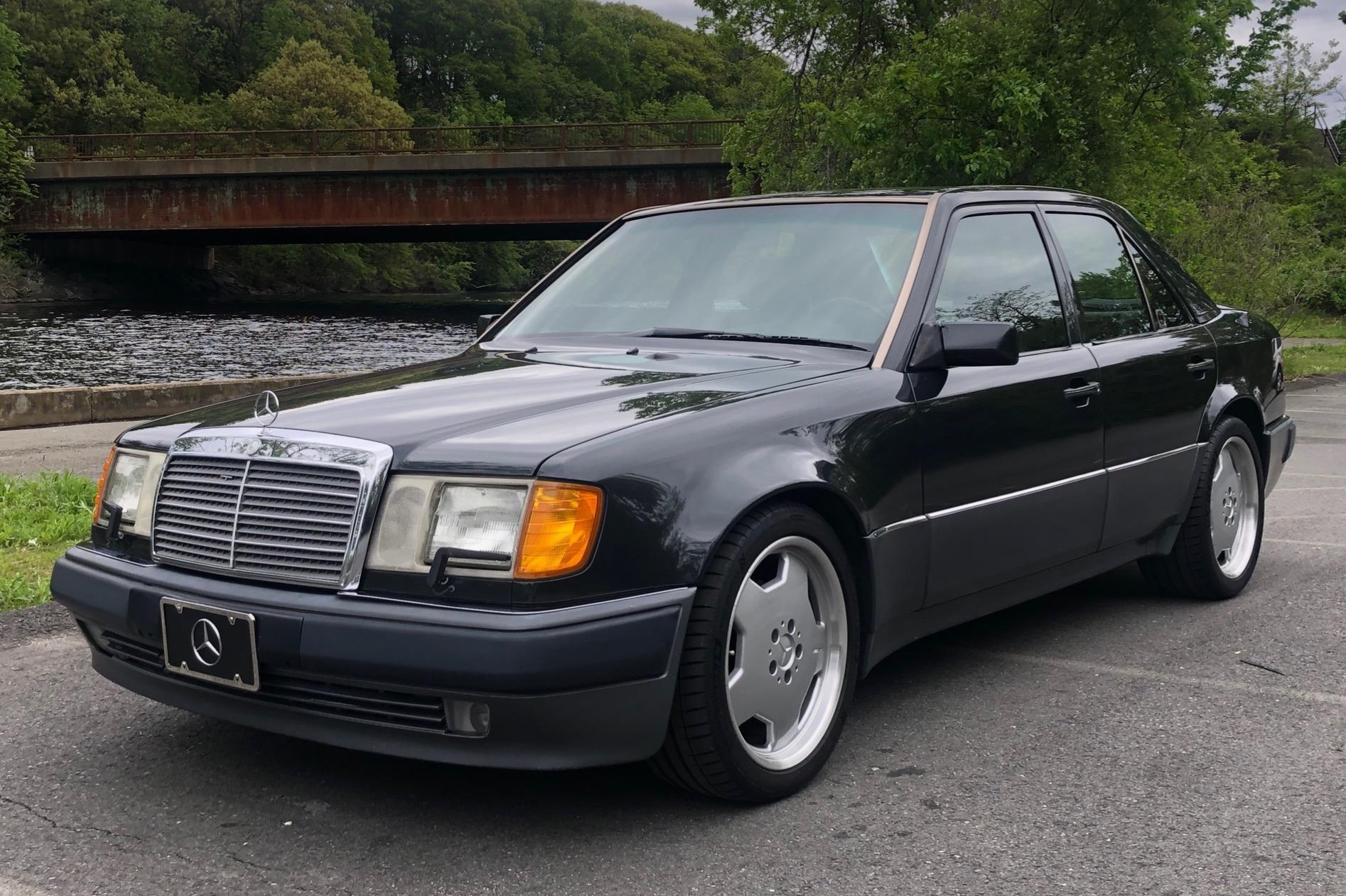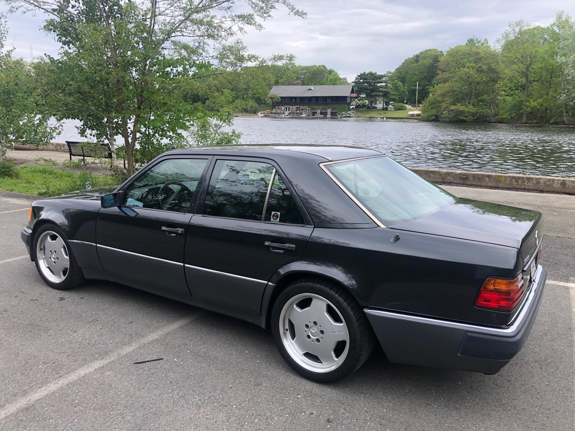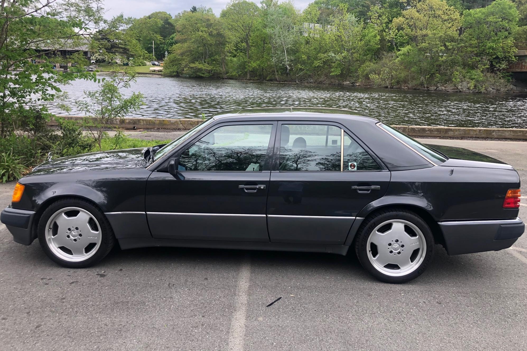 18″ AMG Monoblocks wheels wear Michelin Pilot Sport 4S tires that were recently installed. The selling dealer states that a brake fluid flush was performed, and the rear shocks and front brake pads and rotors were replaced. The removed 16″ eight-hole wheels are included in the sale.