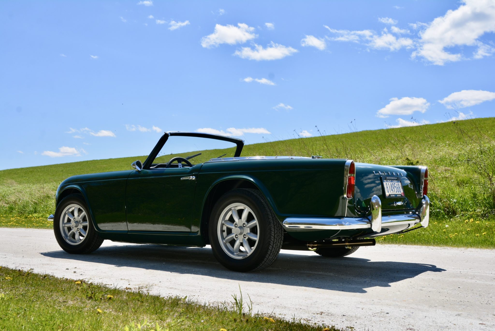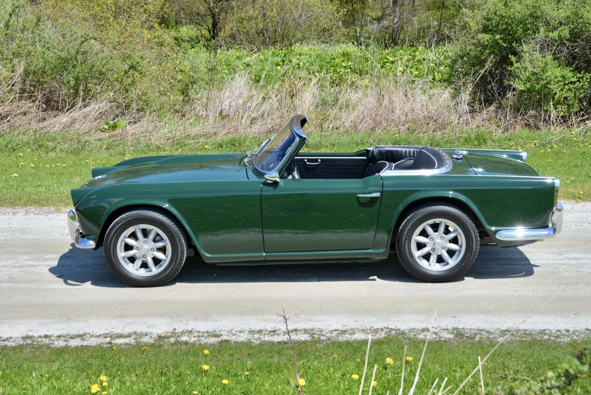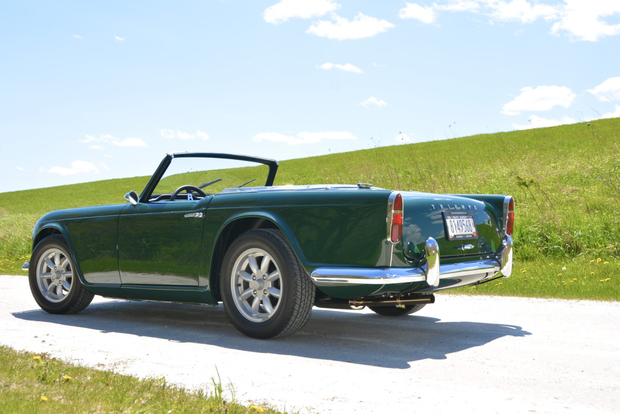 15” Minilite-style wheels are wrapped in Toyo Proxes H4 tires sized 205/60. The brake system features front discs and rear drums.