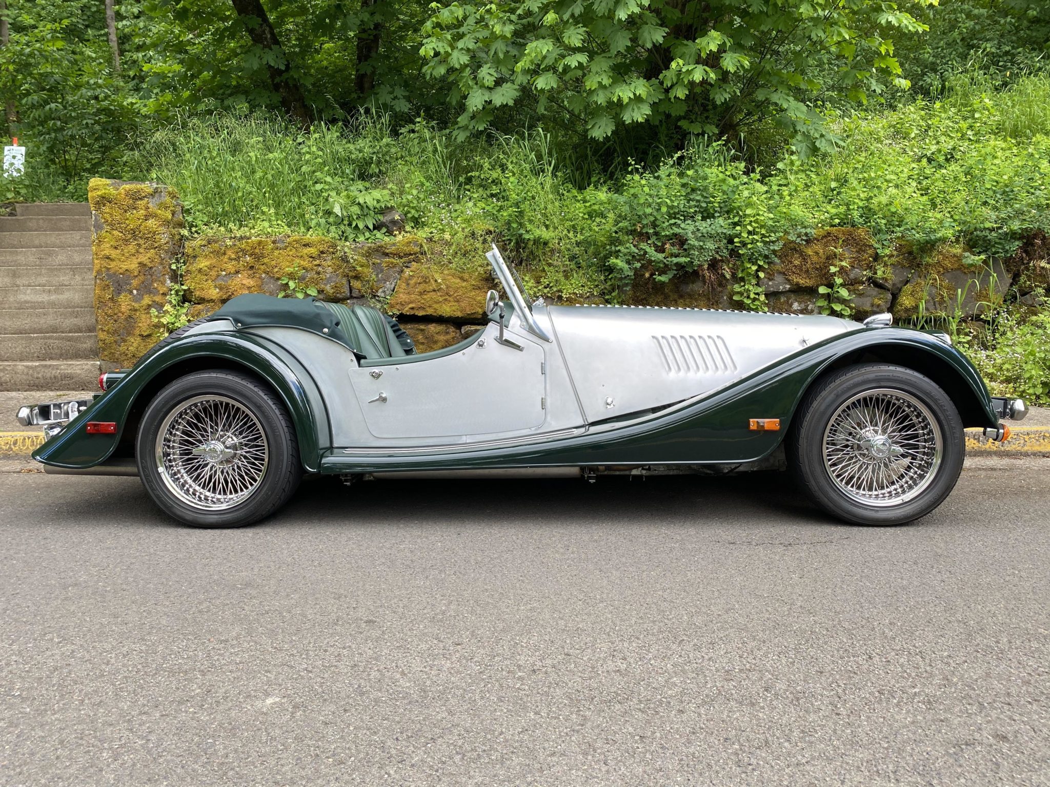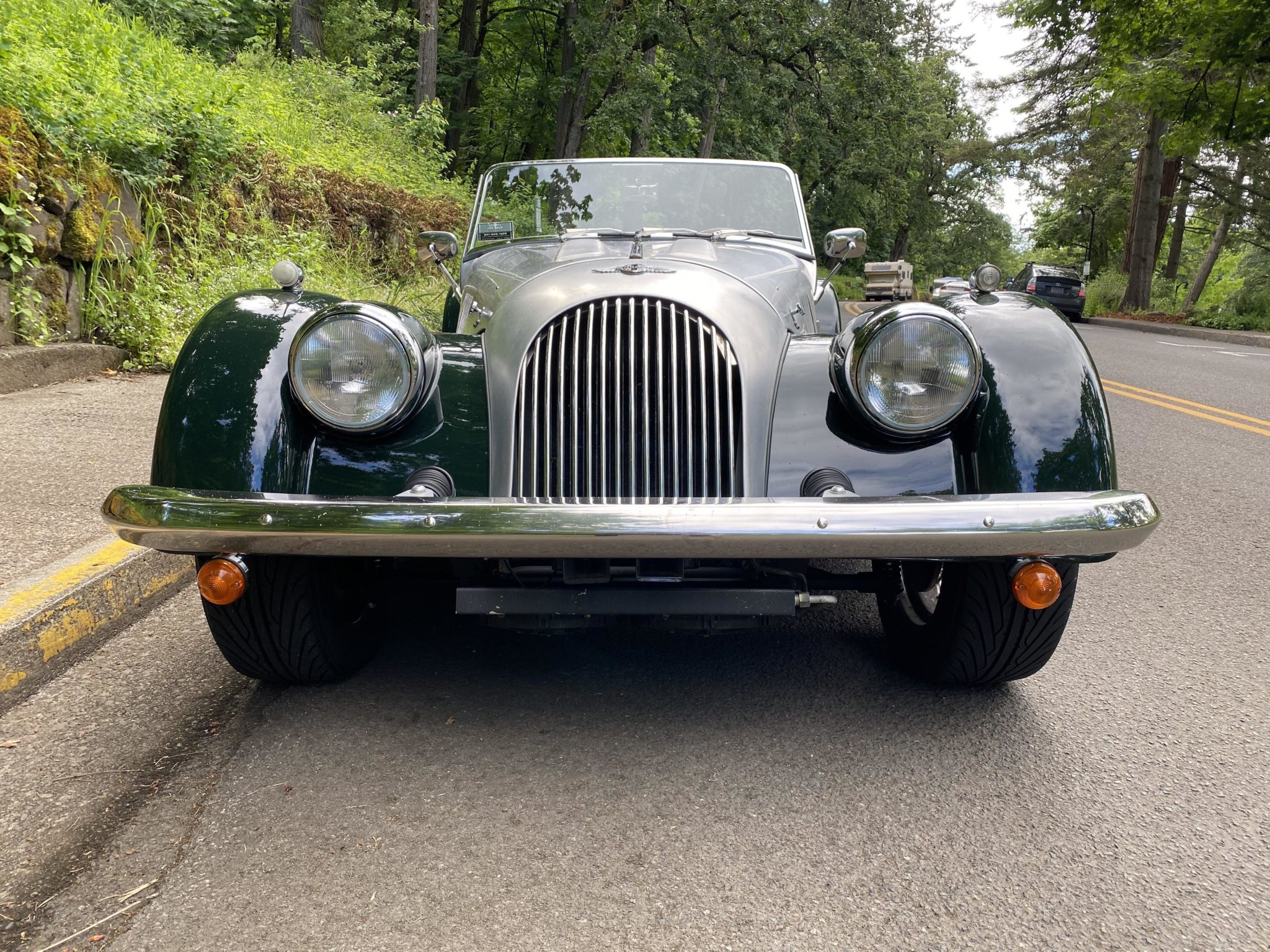Chrome 16″ knock-off wire wheels are mounted with Yokohama AVS ES100 tires, with a matching spare fitted out back. A green soft top and side curtains are included in the sale. A July 2018 service at 4,300 miles included the installation of a new clutch, master and slave cylinders, new rear brake cylinders and servo, a rebuild of the front brake calipers, a brake fluid flush, and new transmission fluid.