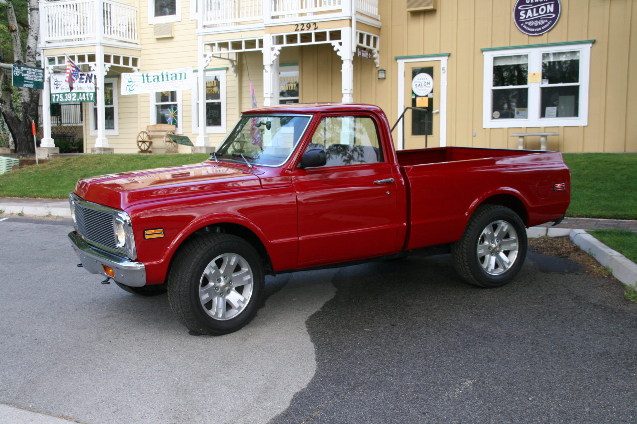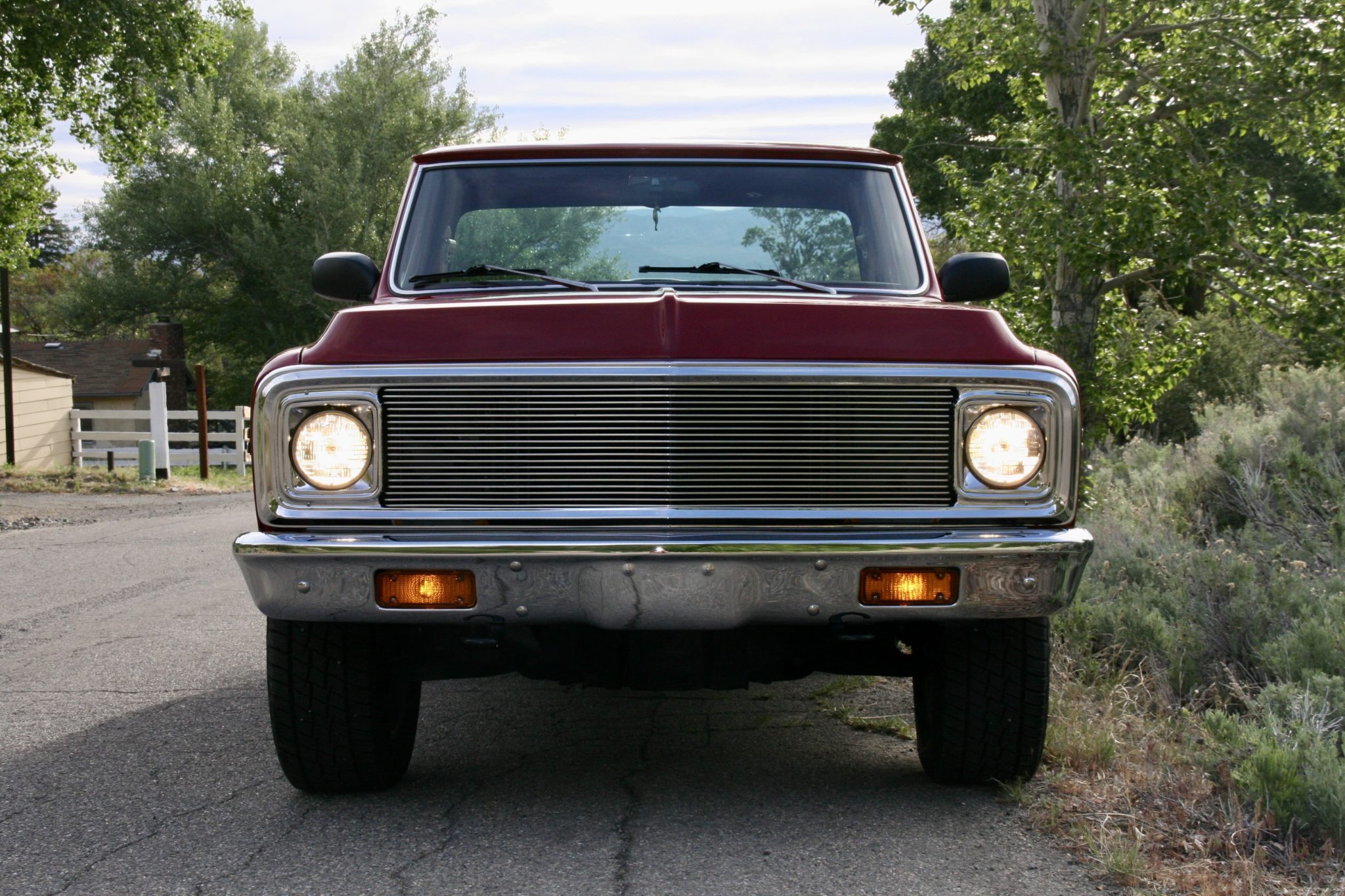 20″ wheels from a GMC Yukon Denali are fitted and wear Chevrolet center caps and 275/60 Cooper Discoverer H/T Plus tires. The truck is equipped with an independent front suspension, a multi-link rear suspension with coil springs, front and rear anti-roll bars, four-wheel vented disc brakes, automatic locking hubs, and a 3.42:1 locking rear differential.
