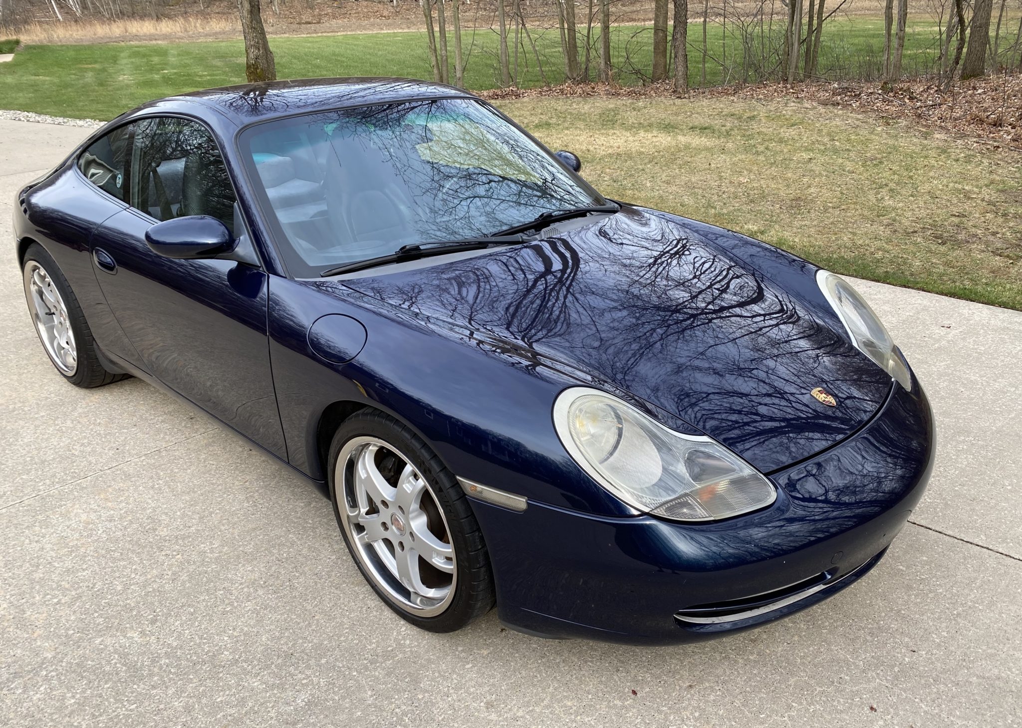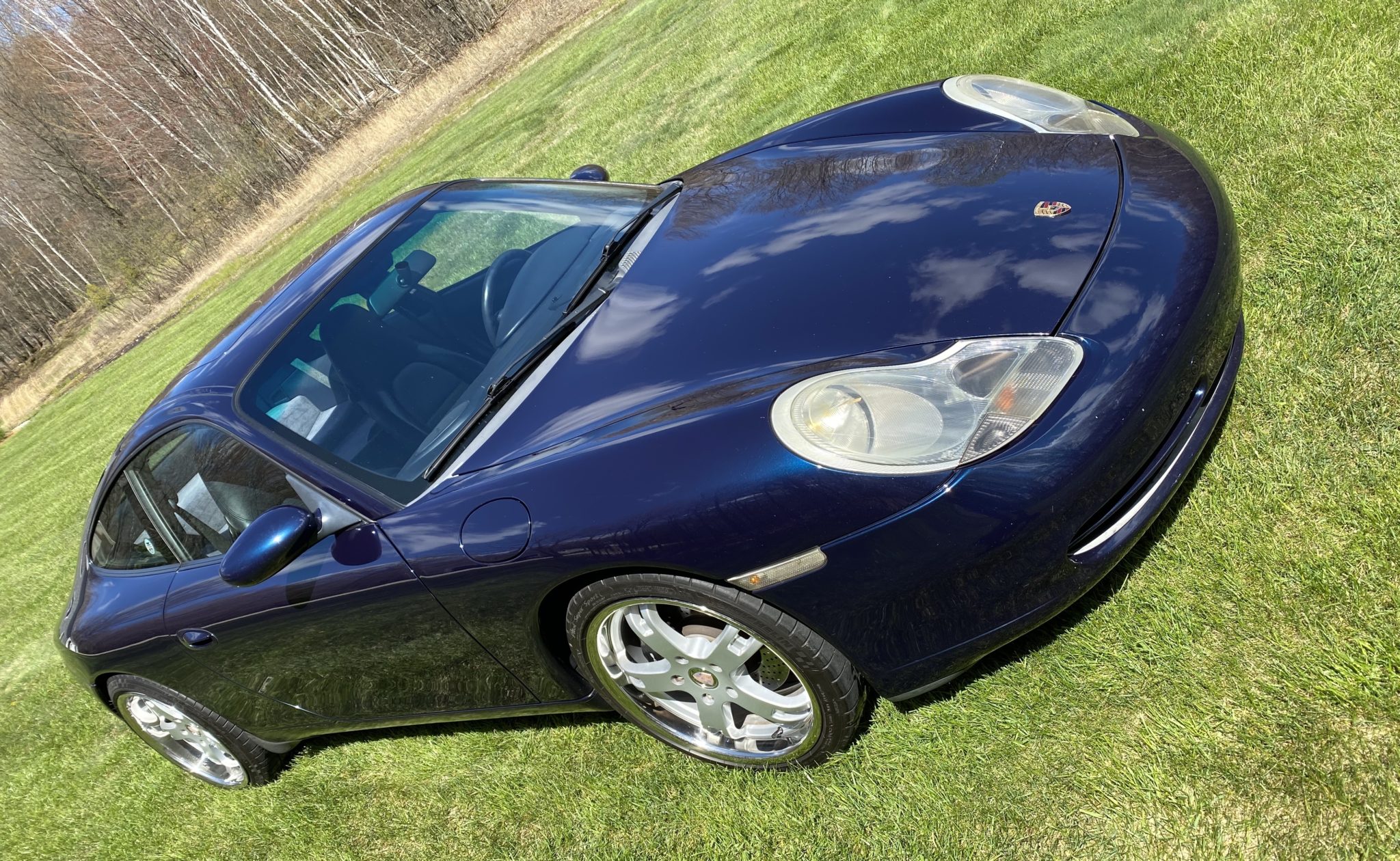 Aftermarket 19″ wheels with polished lips wear colored Porsche crest center caps and 235/35 and 275/30 Michelin Pilot Super Sport tires. The steering rack was rebuilt in 2011, the brake rotors and pads were replaced in 2014, and the rear wheel bearings were replaced in May 2020.