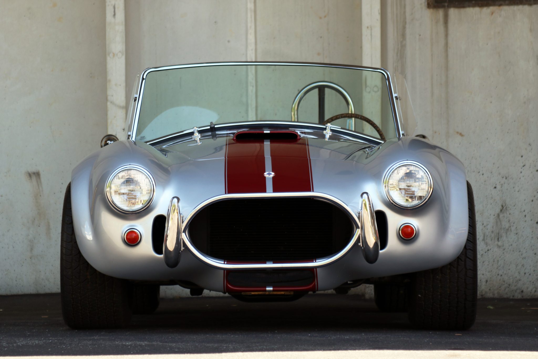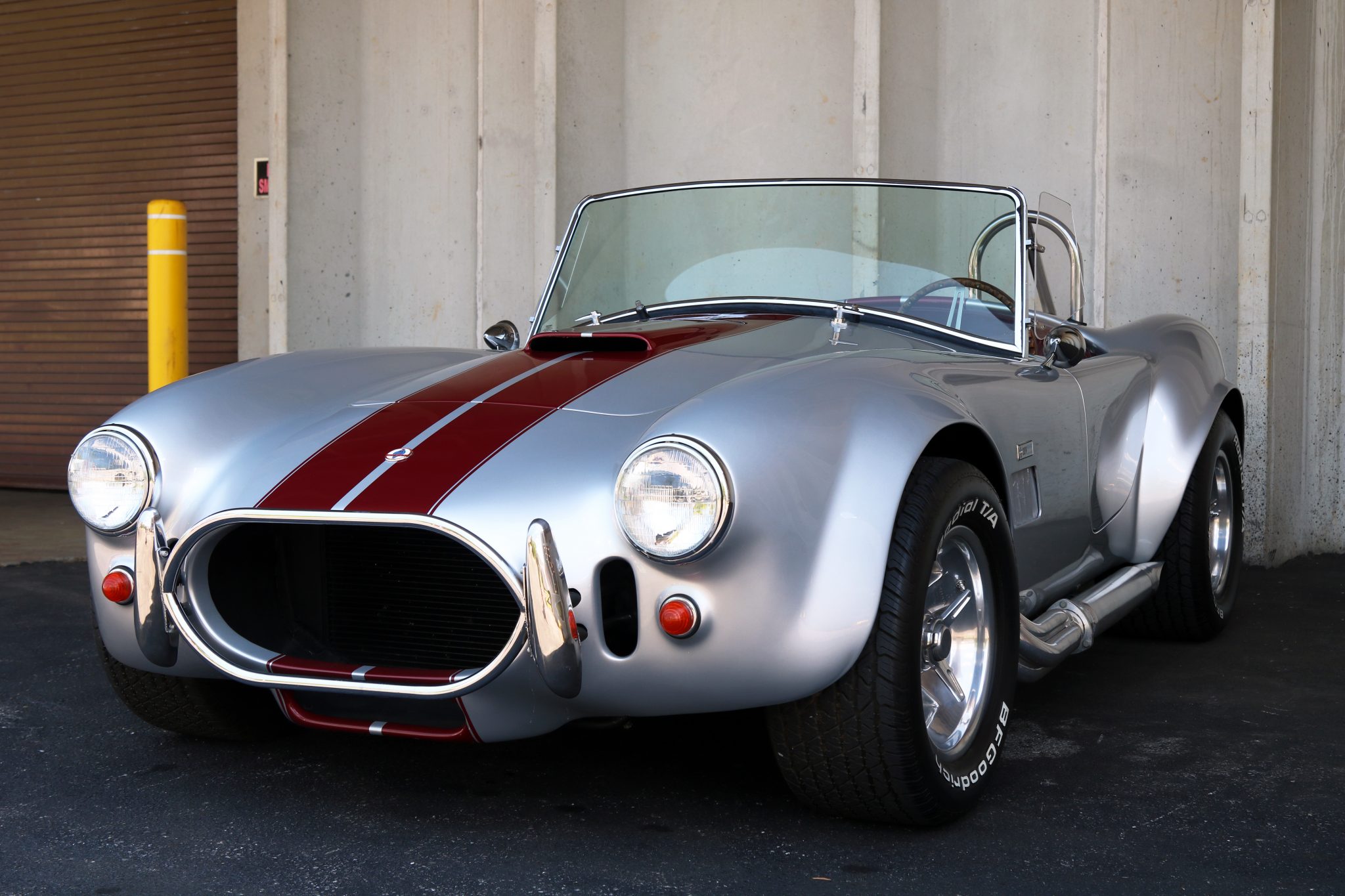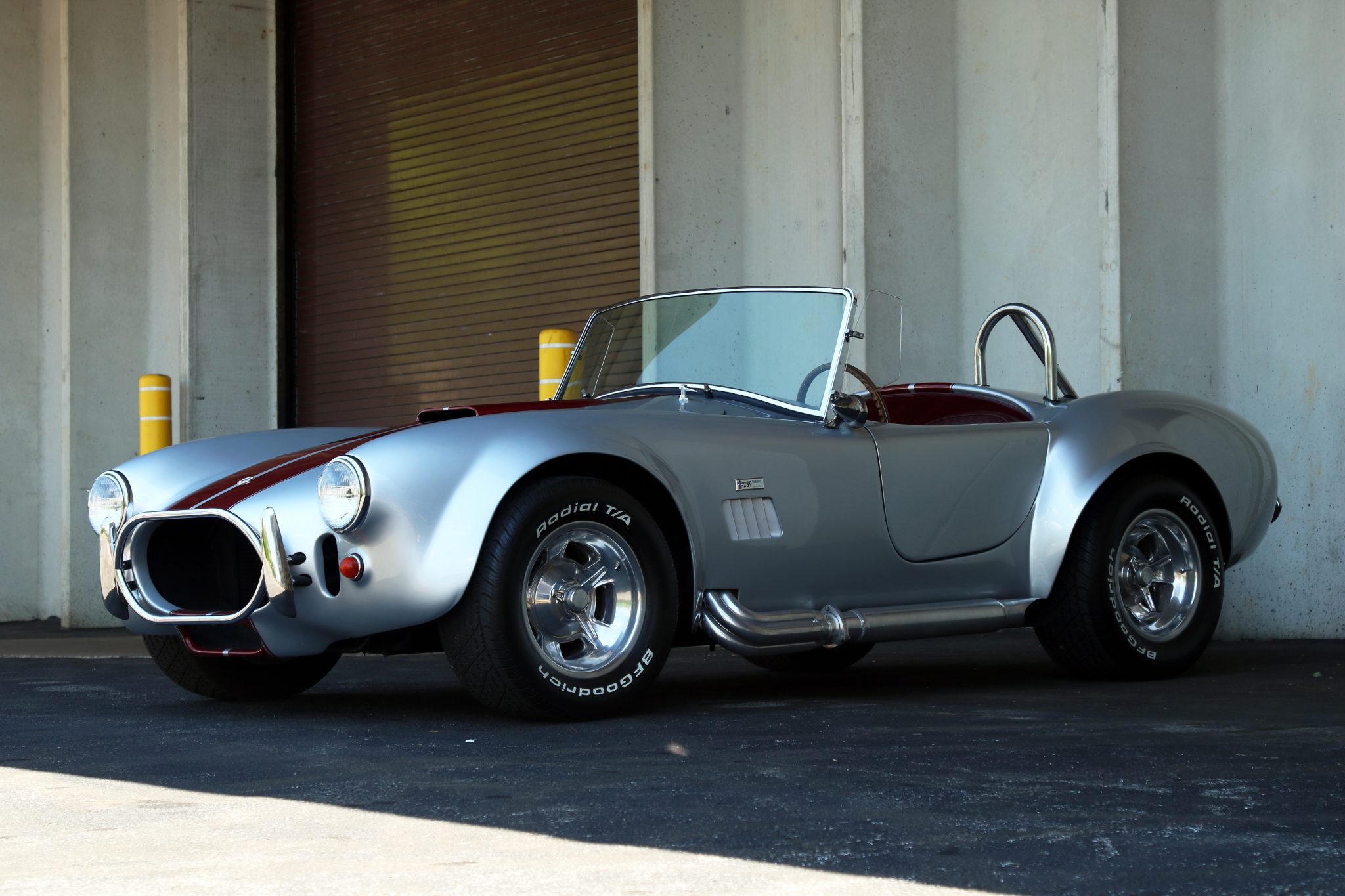 Chrome 15″ Halibrand Sprint wheels measure 8″ wide in the front and 10″ wide out back and are wrapped in BFGoodrich Radial T/A tires. Braking is handled by four-wheel discs with Wilwood calipers.