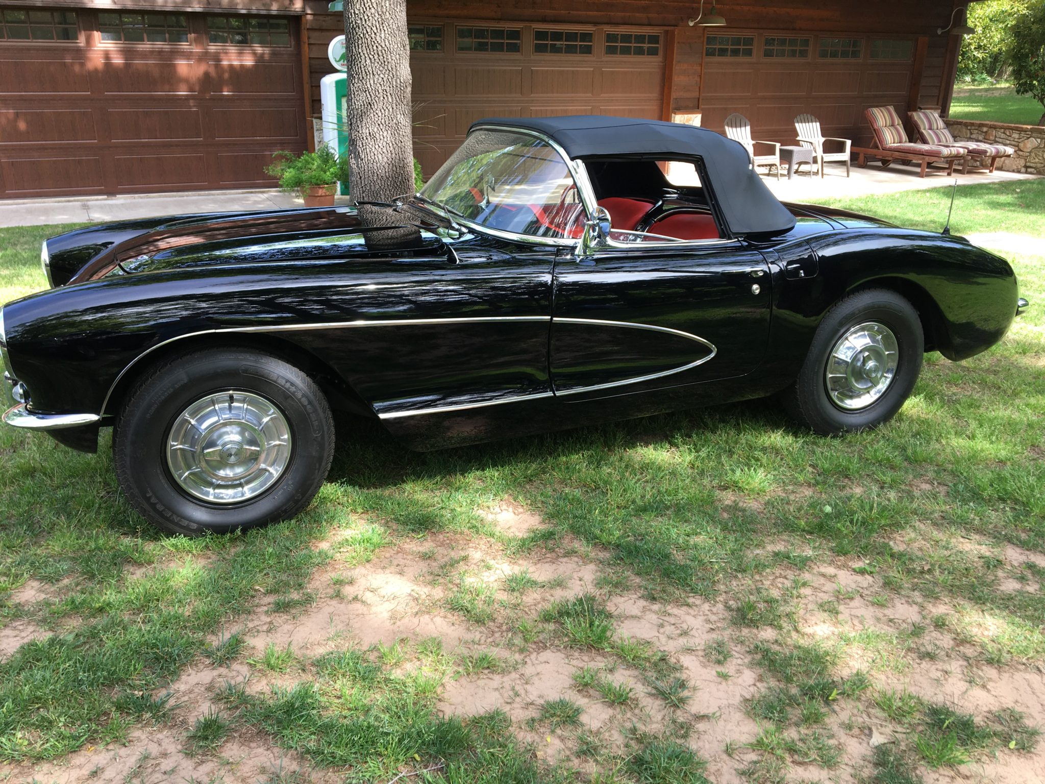 15″ steel wheels feature polished covers with simulated knockoffs and wear 205/75 General tires. The seller states that the suspension and brakes were overhauled during the 2016 refurbishment.