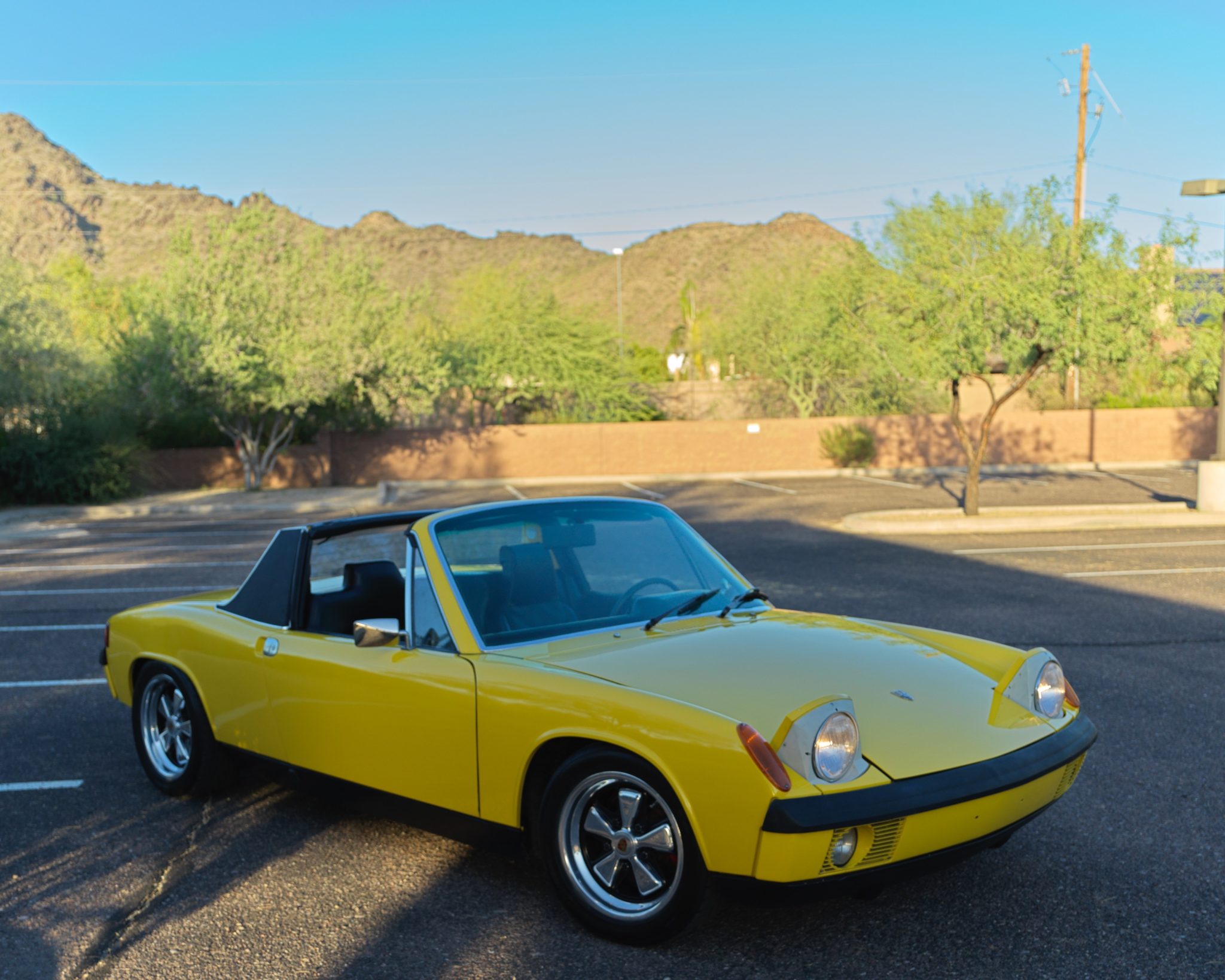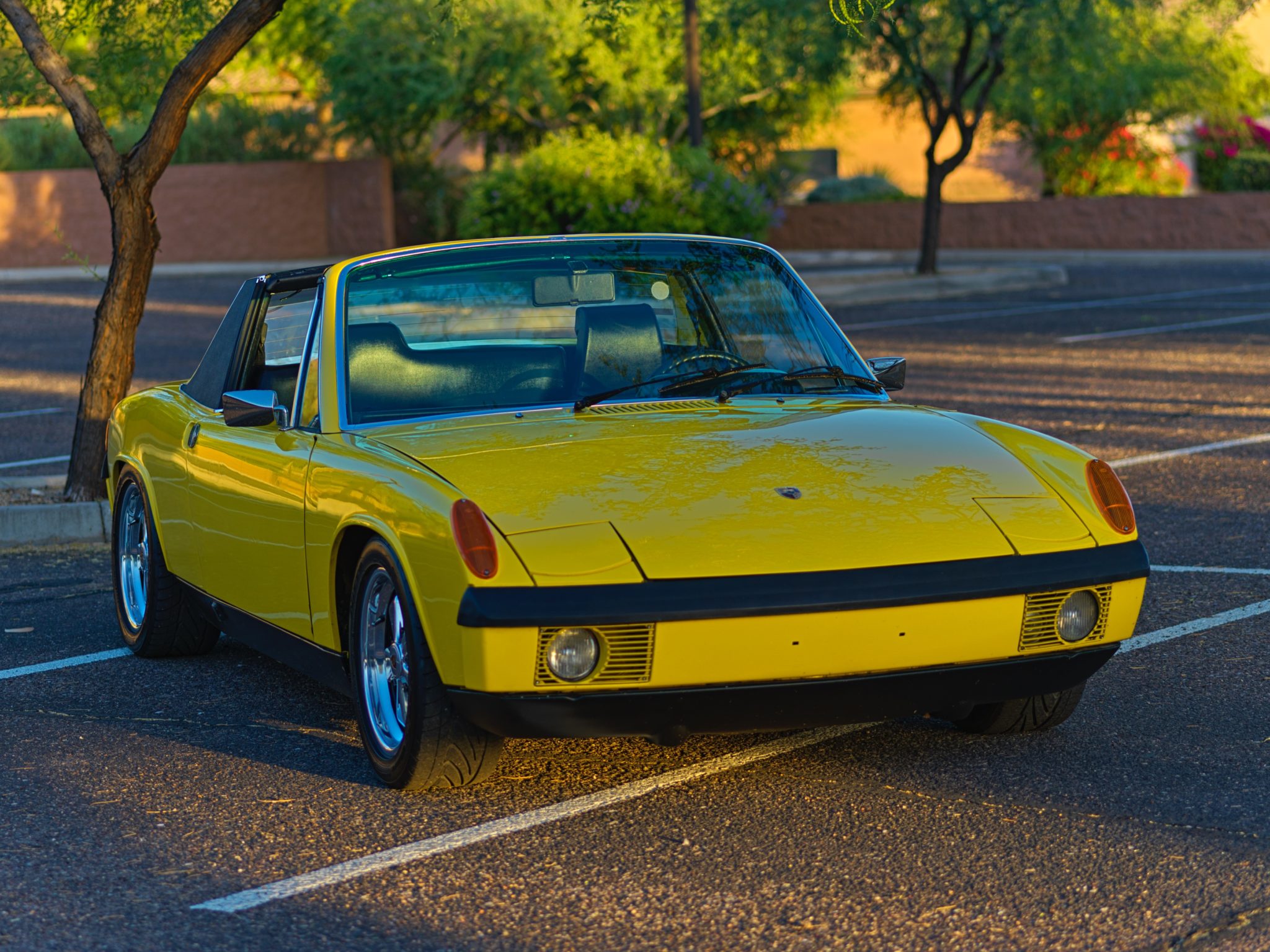 Fuchs wheels with polished faces and lips measure 15×7″ and wear Nitto Neo Gen tires showing 2011 date codes. Braking is handled by rebuilt 914-6 calipers and a replacement master cylinder, brake discs, and hoses. The front control arms and rear trailing arms have been magnafluxed and refinished, and the seller notes that an aluminum front suspension cross-brace is included. A walk-around video is viewable here.