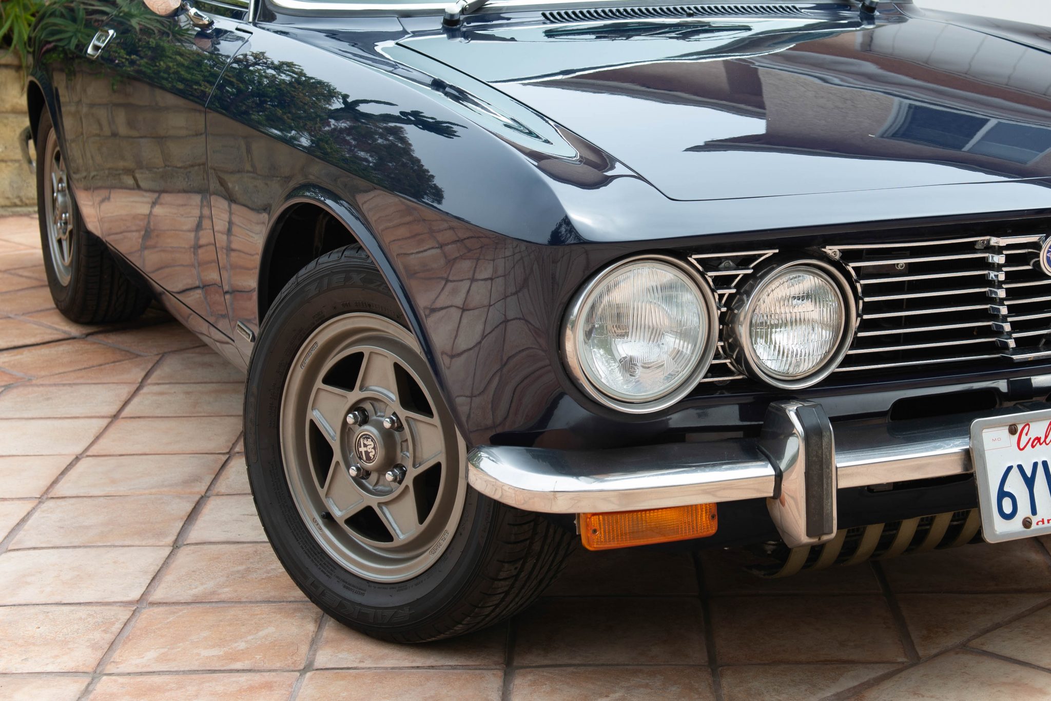 Campagnolo 14×6” five-spoke wheels are powder coated silver and wrapped in Falken Ziex tires. An ATE brake system remains installed and now utilizes cross-drilled rotors and braided stainless hoses. Springs from Centerline International are fitted with Koni shocks, aftermarket bushings, and adjustable upper control arms.