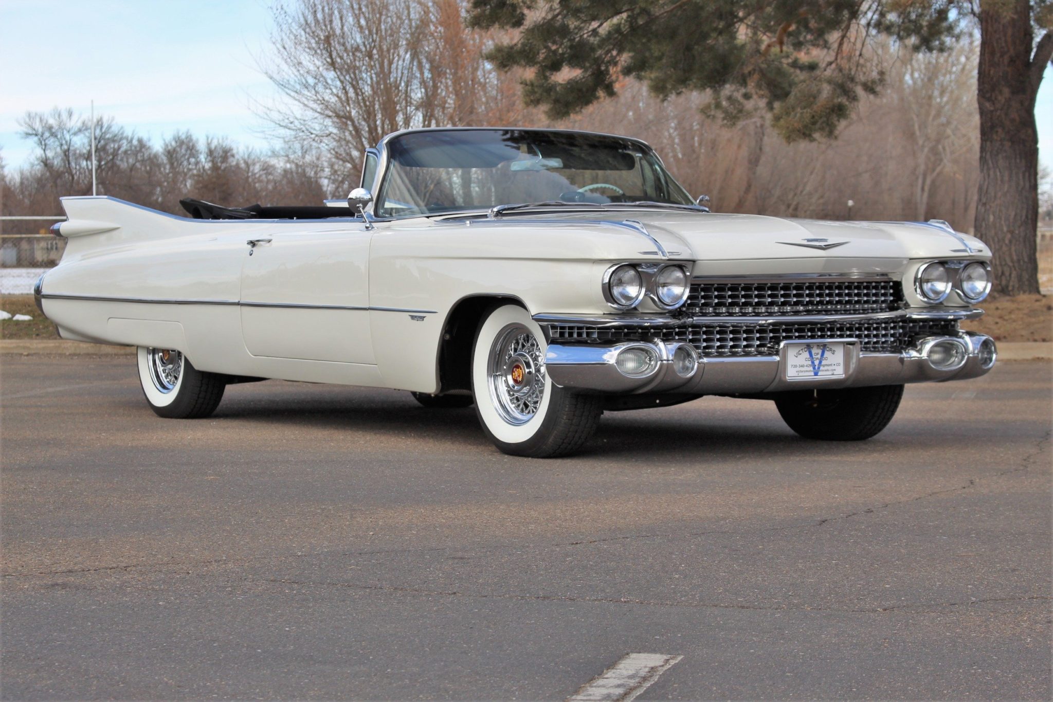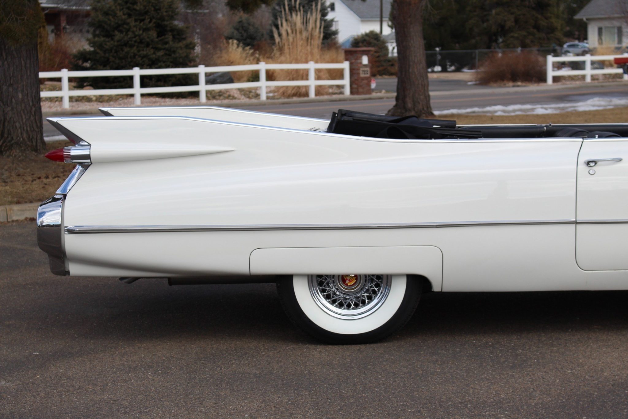 Chrome spoke wheels with center crests are an upgrade over the lower-spec hubcaps, and American Classic whitewalls are in nearly new condition.