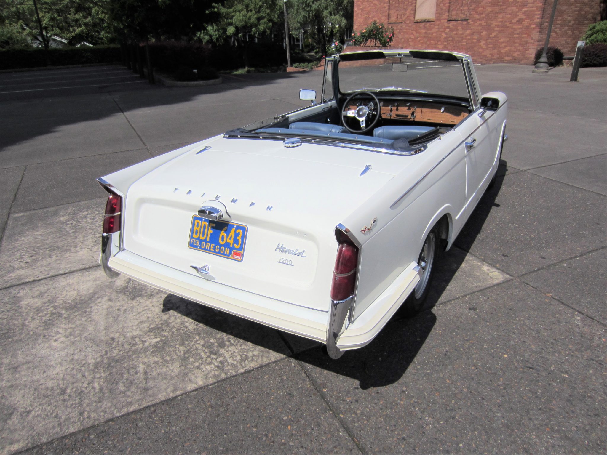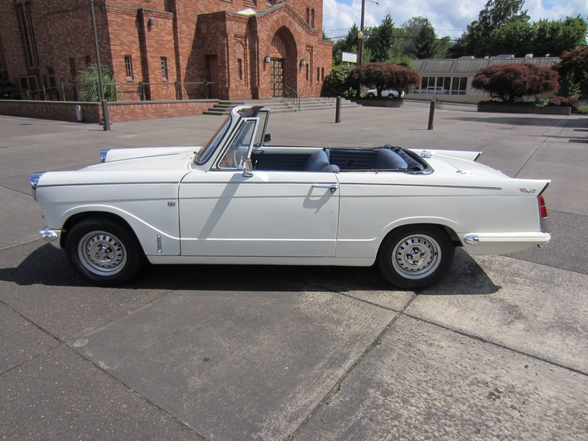 Refinished 13” wheels sourced from a later Spitfire model wear replacement tires that were fitted within the past year. The suspension features a lowering block and rear camber bar out back. The seller also fitted the front disc brakes from a Spitfire, along with replacement of the rear brake cylinders and shoes. The factory steel wheels and hubcaps are included in the sale and shown in the gallery below.