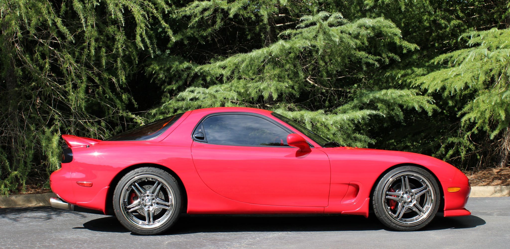Polished 18″ Sport Max Racing wheels are mounted with 235/40 front and 265/35 rear Falken Azenis RT615 tires. The disc brakes feature cross-drilled and slotted rotors at each corner, and braided brake hoses as well as EBC brake pads were fitted. The suspension system utilizes adjustable Tokico shocks.