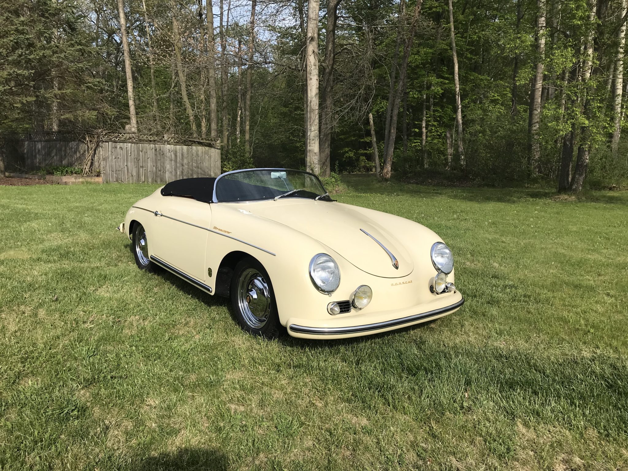 Ventilated 15” steel wheels wear Porsche-crest hubcaps and Continental tires. A new black soft top was supplied during the refurbishment, and a pair of matching side curtains is included in the sale. The top and side curtains can be seen in the photo gallery below, along with closeups of the finish, trim, and lenses.