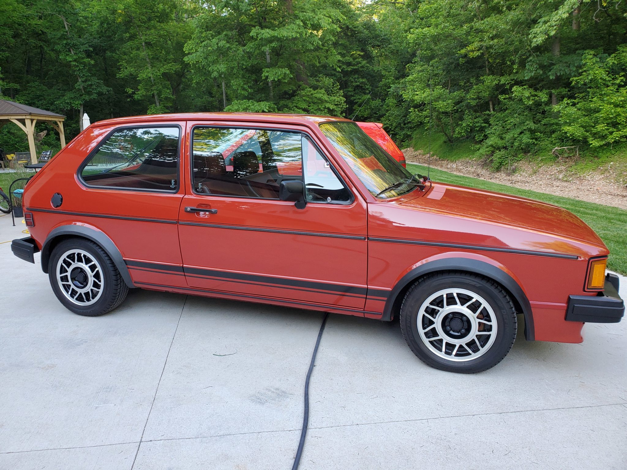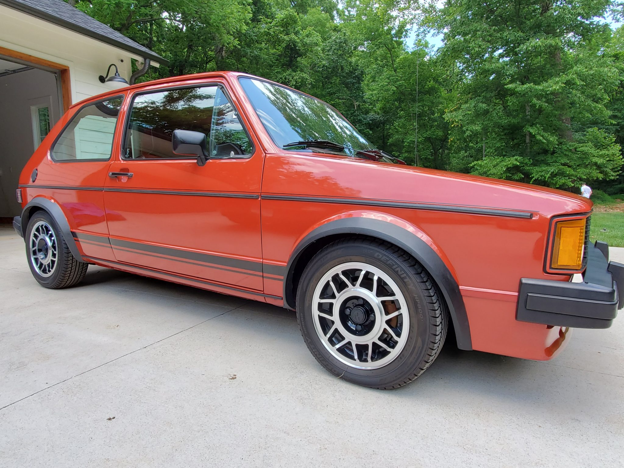 Factory 14″ snowflake wheels were refinished by a previous owner and are mounted with Definity HP800 tires that were installed by the seller. The car rides lower than stock on adjustable shocks. Additional work performed during current ownership included replacing the front wheel spindles, CV shafts, and wishbones, as well as the front brake calipers, discs, pads, and hoses. A replacement brake master cylinder will reportedly be installed for the next owner.