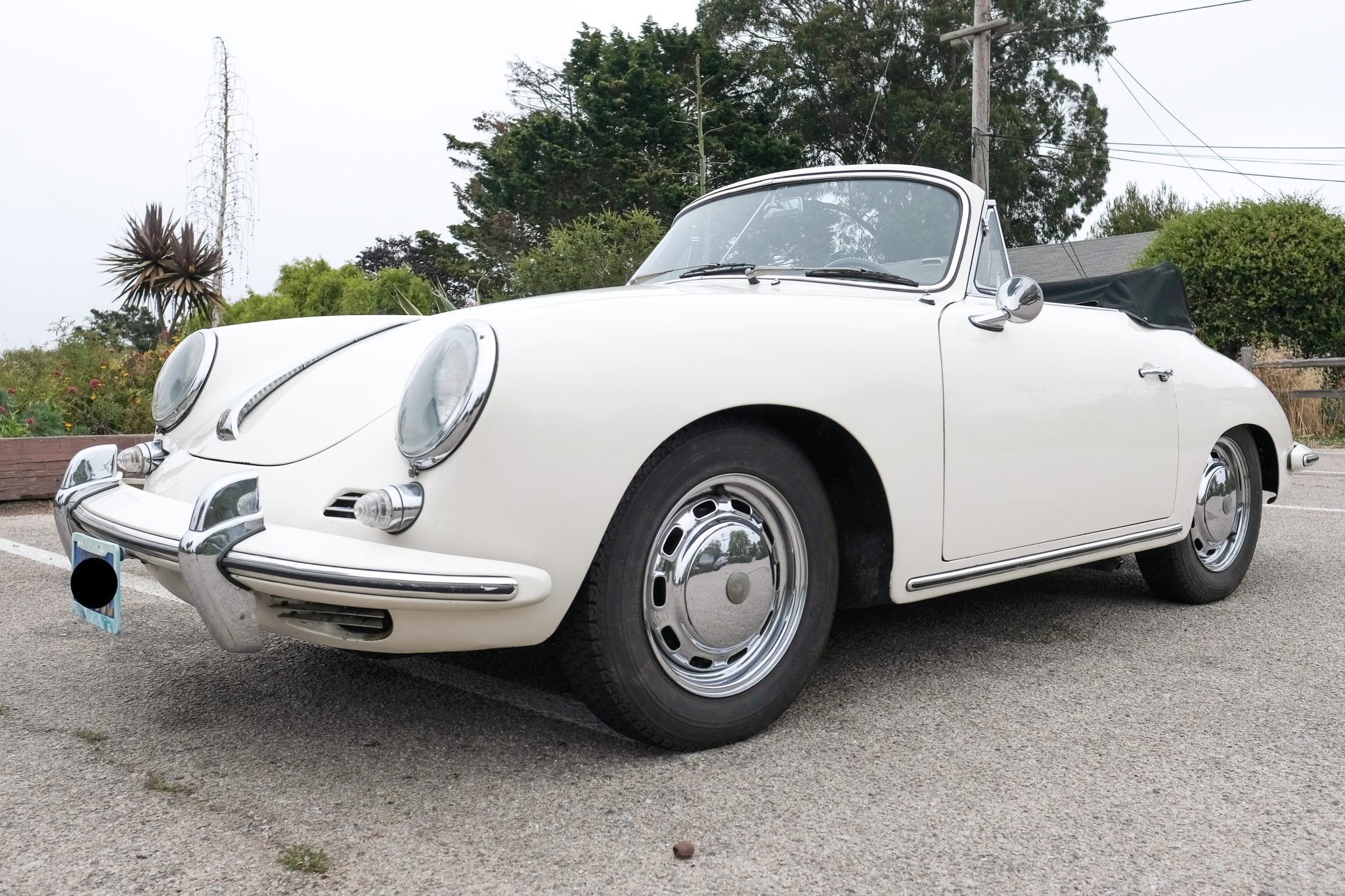 15″ chrome wheels wear chrome Porsche-crest hubcaps and are wrapped in 165-series Michelin radial tires. The seller states that the shock absorbers have been replaced during current ownership and that the front brakes were overhauled in October 2018.