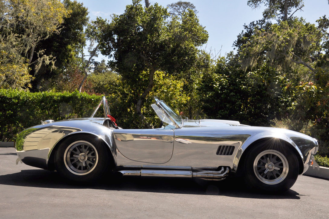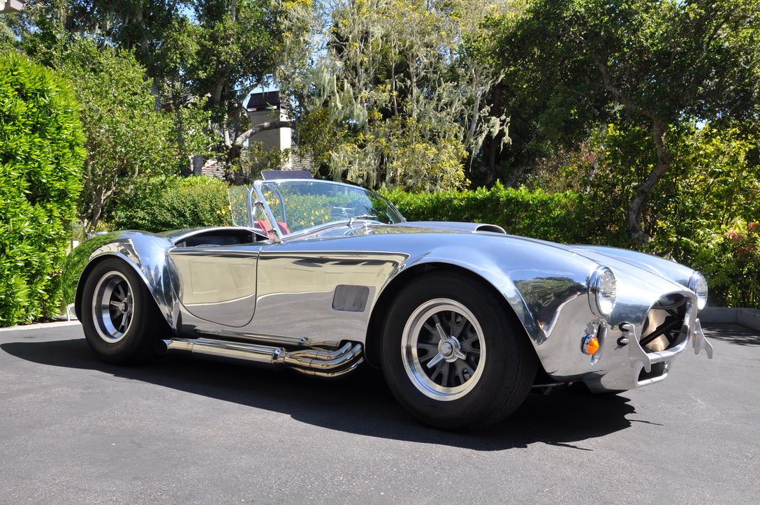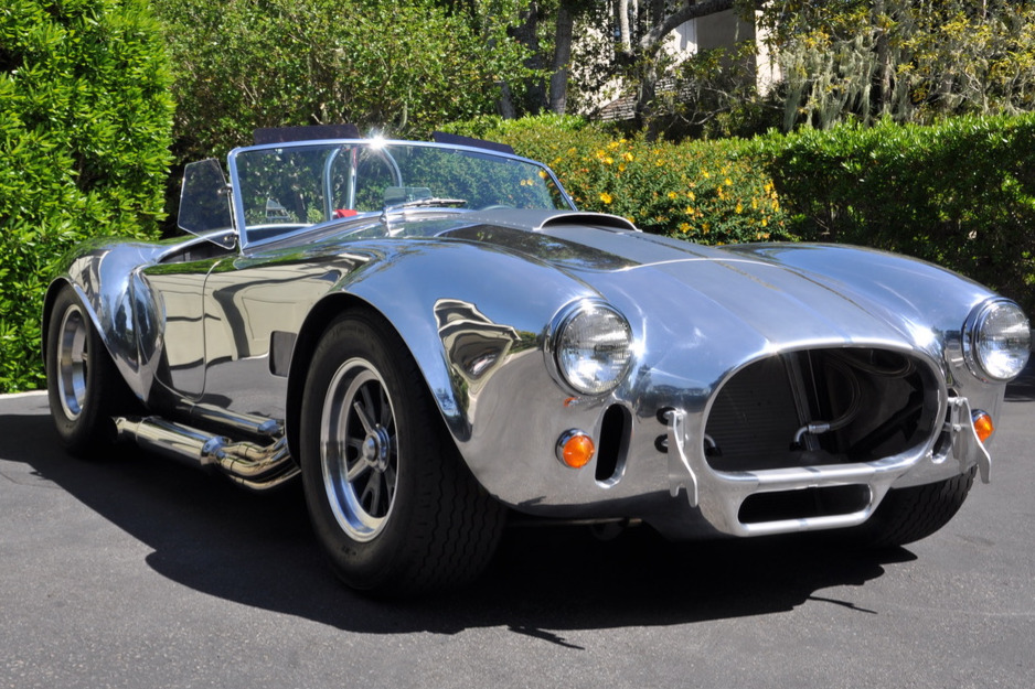 This Cobra features a powder-coated 4″ tubular chassis suspended by control arms and Penske coilovers with Hyperco springs at all four corners. Wilwood disc brakes utilize four-piston calipers front and rear. Trigo Halibrand-style knock-off wheels measure 15″ and are mounted with Avon CR6ZZ tires sized 245/50 up front and 295/50 at the rear. New front wheel bearing assemblies were fitted in January 2020 according to the seller.