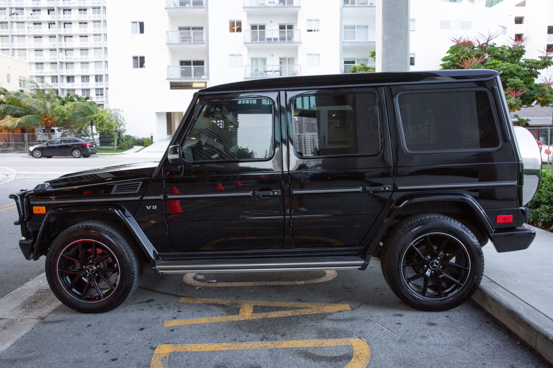 Replacement 20″ AMG wheels wear 285/30 Michelin Defender LTX M/S tires. The rear brake pads were replaced and a fluid flush was performed in October 2019, while in January 2020, a tie rod end was replaced and an alignment was completed.