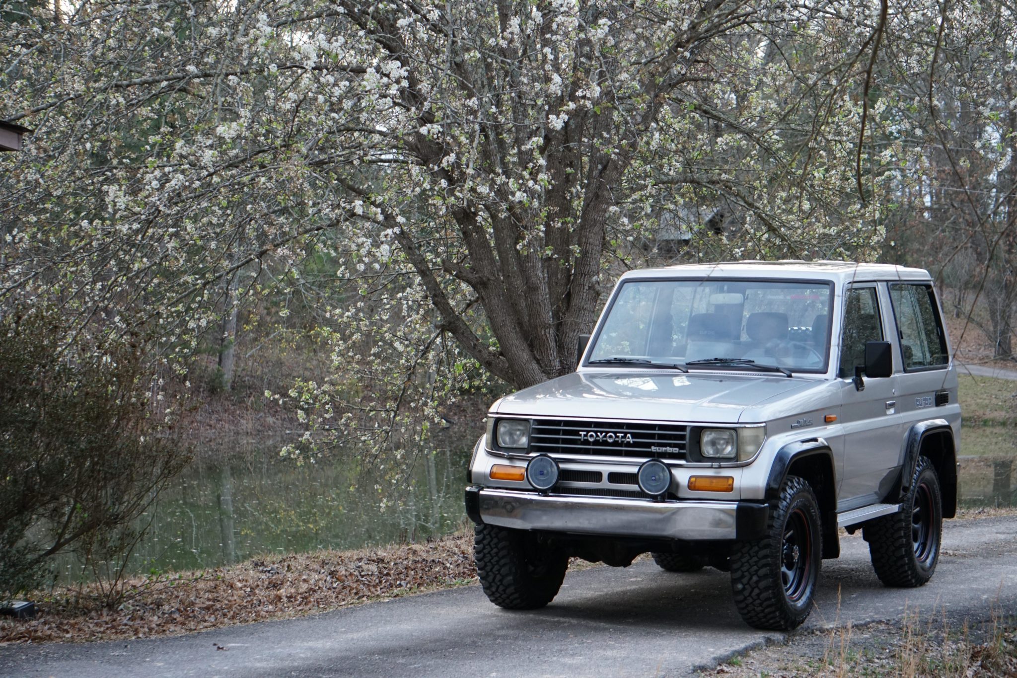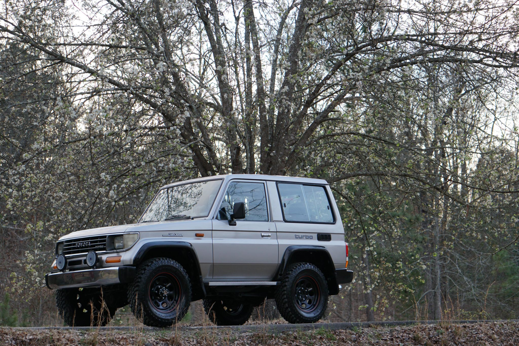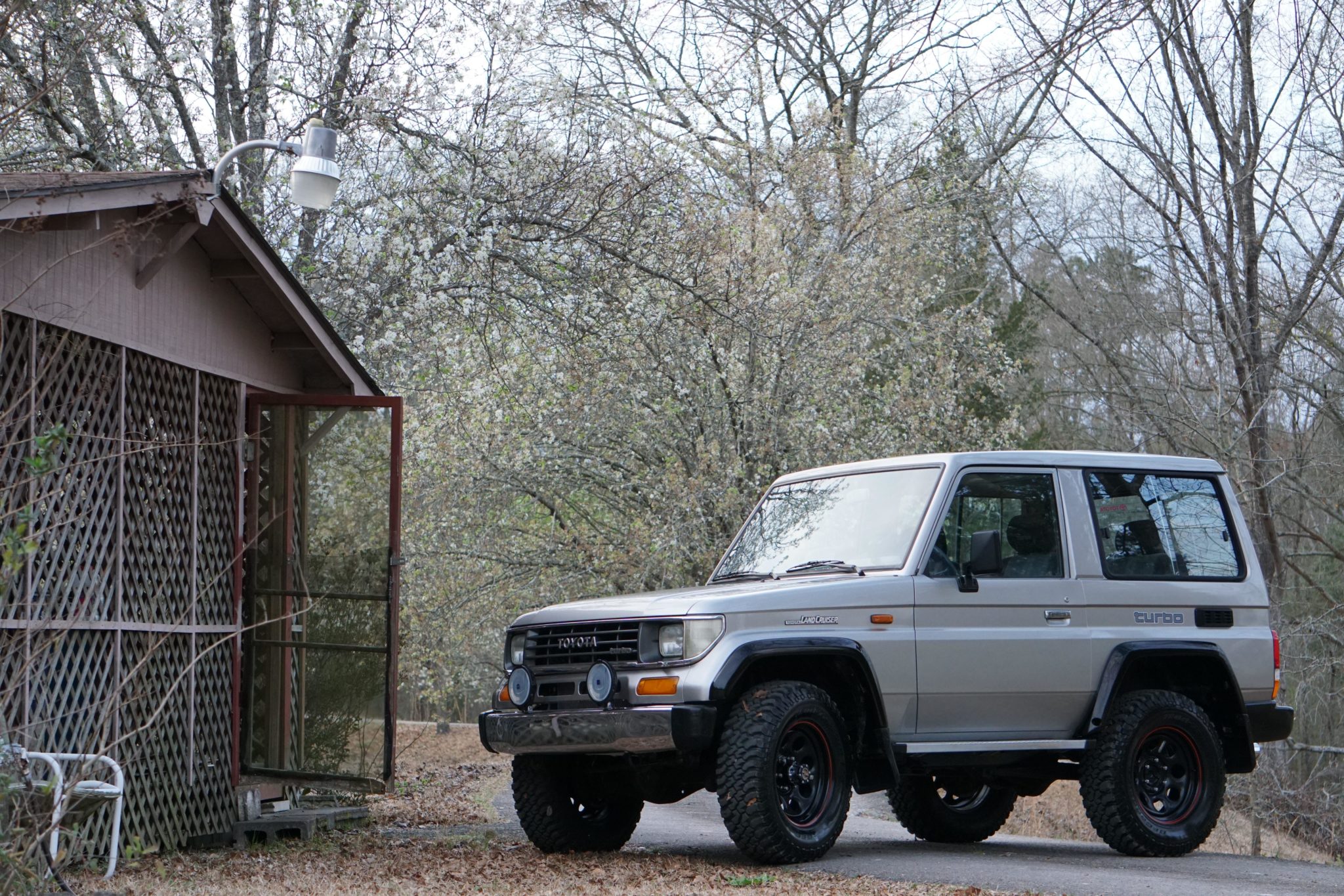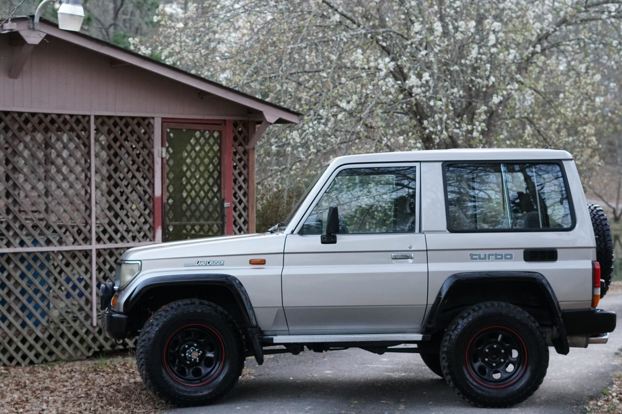Black 17″ MRW steel wheels are mounted with 255/75 BFGoodrich Mud-Terrain tires that were fitted in 2014, including the matching spare mounted to the cargo door. The truck has been modified with a suspension lift, while power steering and brakes were factory-equipped.