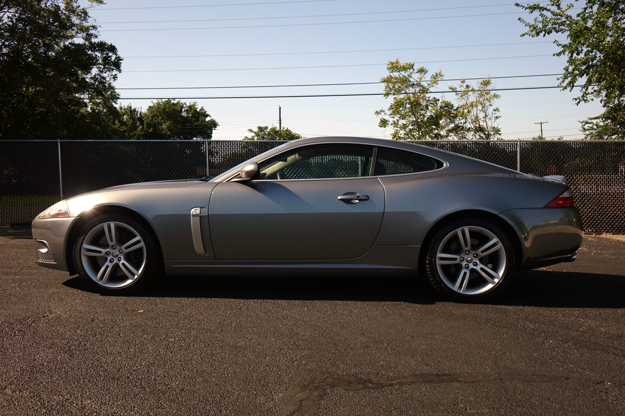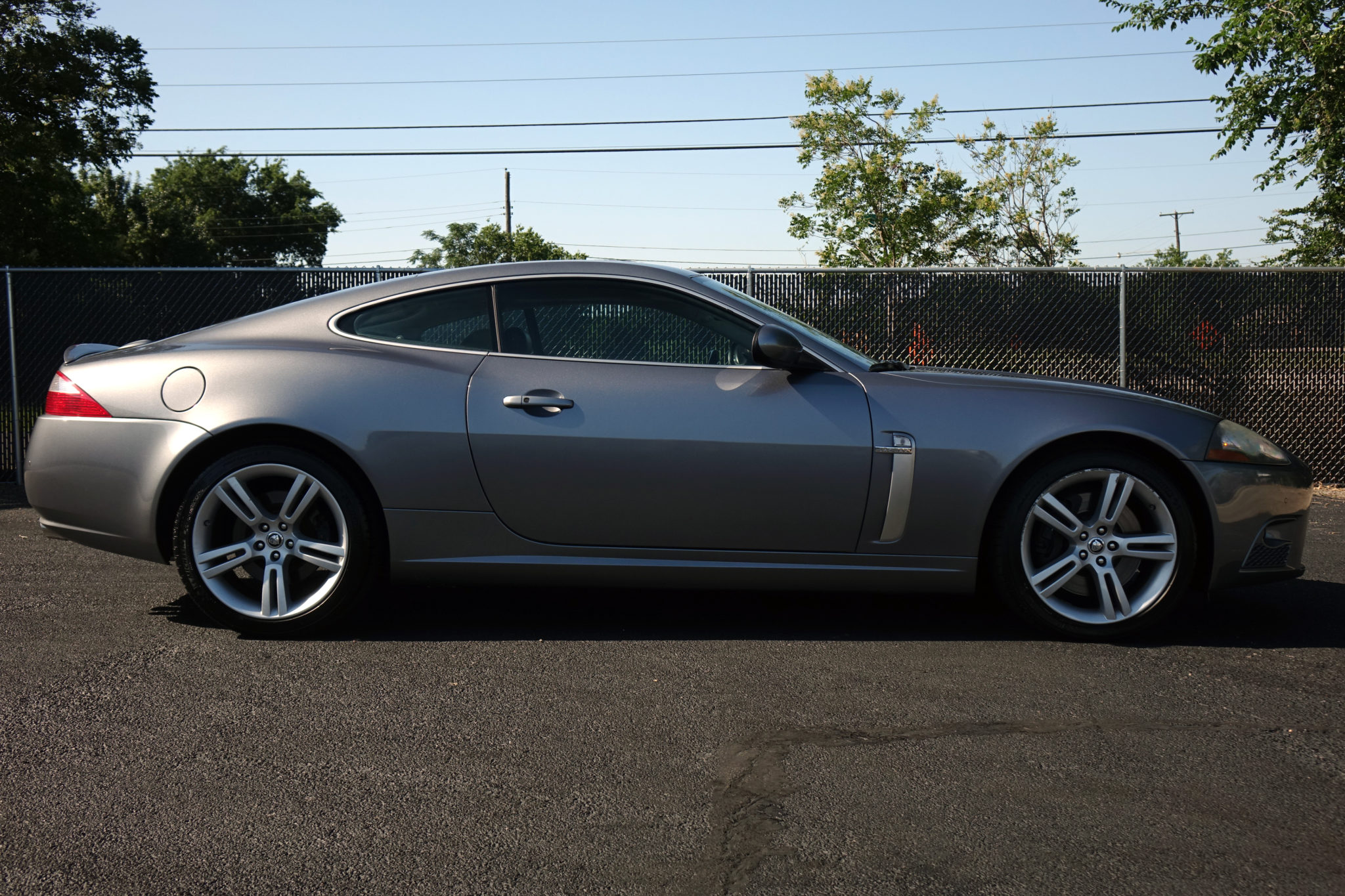 Factory 19″ twin-spoke wheels are mounted with Michelin Pilot Sport A/S3 tires all around, and curb rash is noted on the passenger-side front wheel.