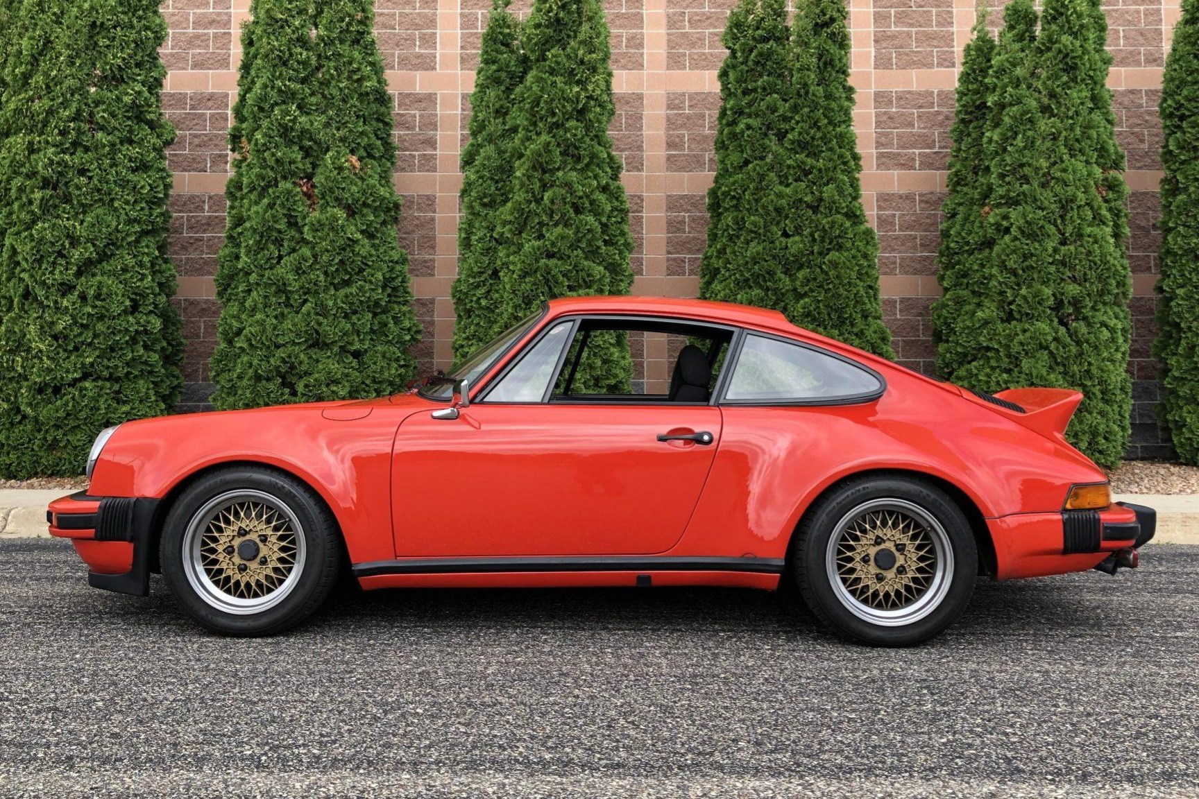 BBS 16″ basketweave wheels feature gold centers and are wrapped in Michelin Pilot Sport A/S 3+ tires. A walk-around video is provided here.