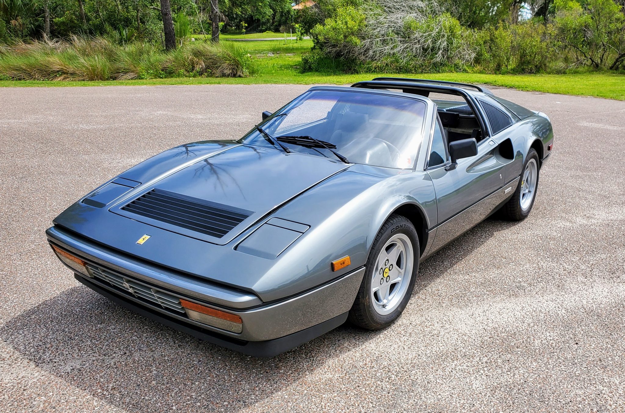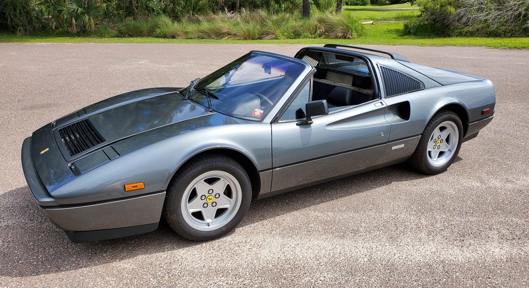 Five-spoke 16″ wheels show Ferrari castings and are mounted with 205/55 and 225/50 Continental ExtremeContact DW tires. Standard equipment included four-wheel ventilated disc brakes as well as rack-and-pinion steering.