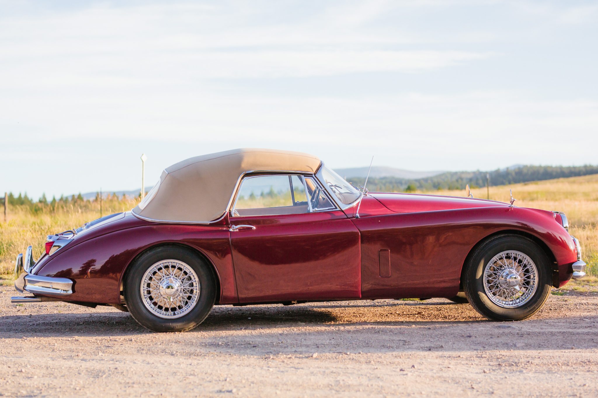 16” wire wheels wear Vredesten Sprint Classic tires that were mounted in 2007. Four-wheel Dunlop disc brakes were introduced as a standard feature on the XK150 model and are servo-assisted. The brake system on this example was overhauled in 2007, including a rebuild of the master cylinder.