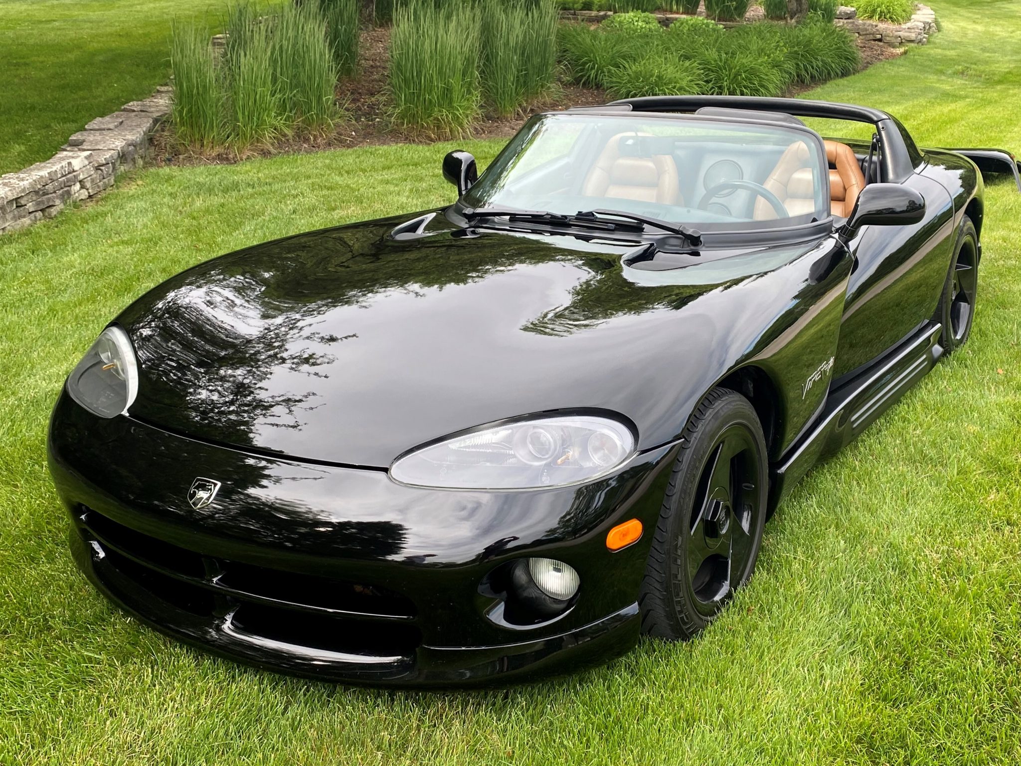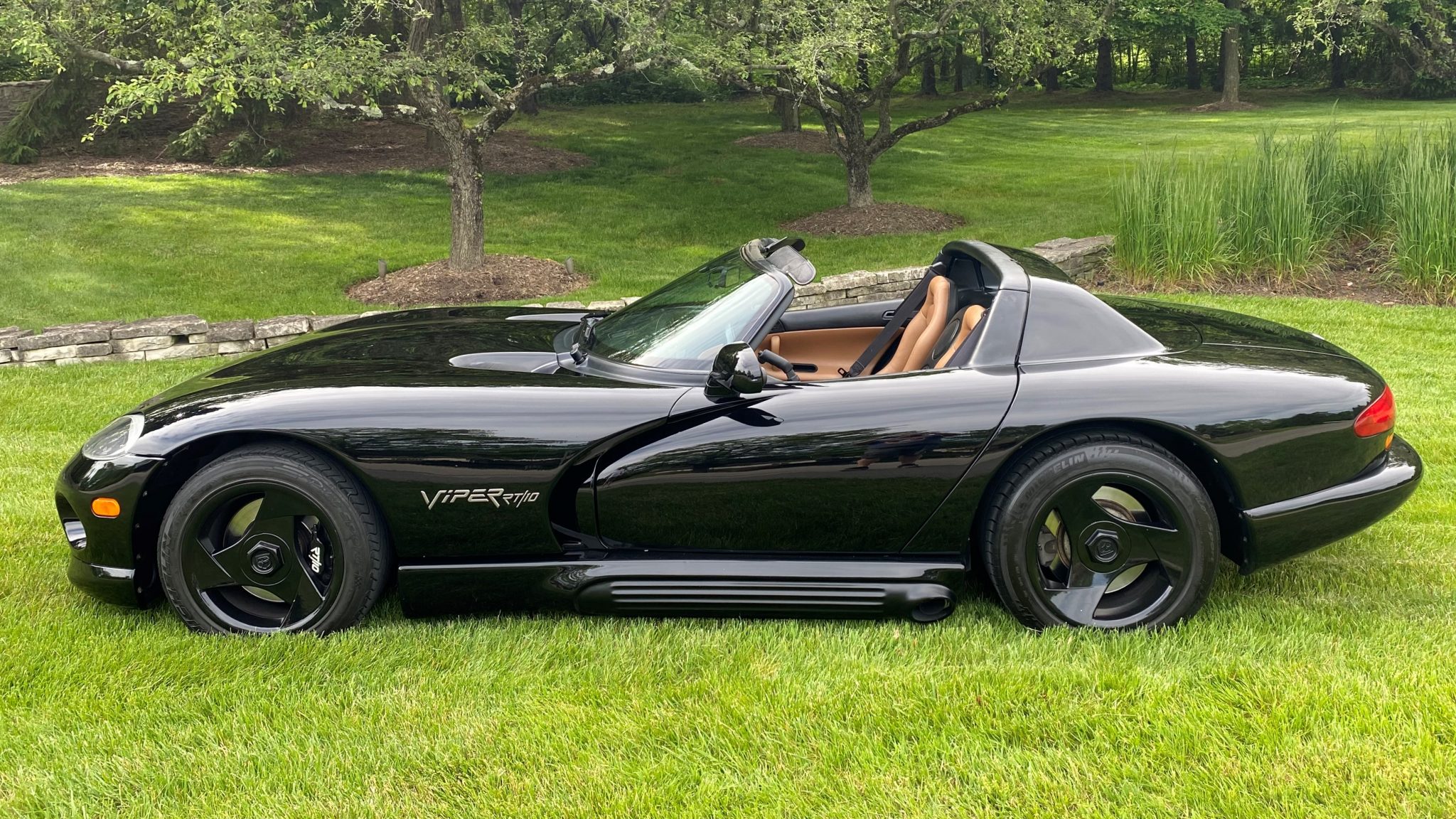 The factory 17″ wheels were refinished in black and wear 275/40 front and 335/35 rear Michelin Pilot Sport tires showing 2003 and 2007 date codes, respectively. The four-wheel disc brakes feature black calipers with white RT/10 script up front.