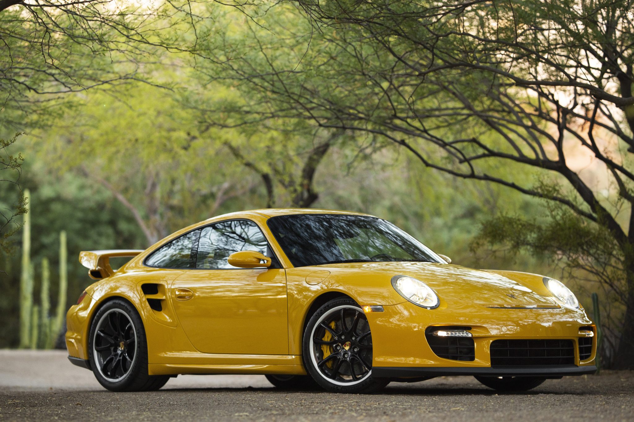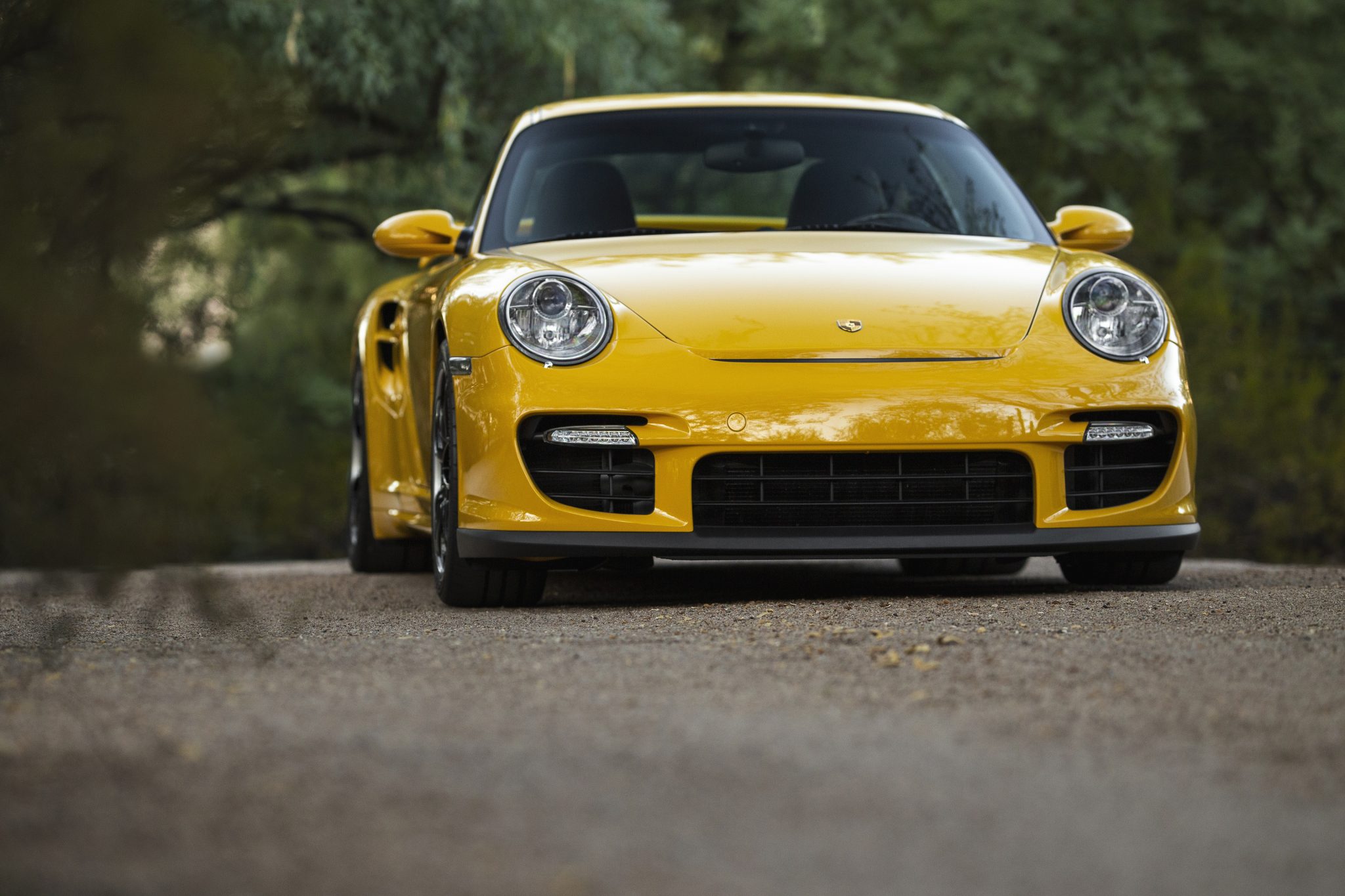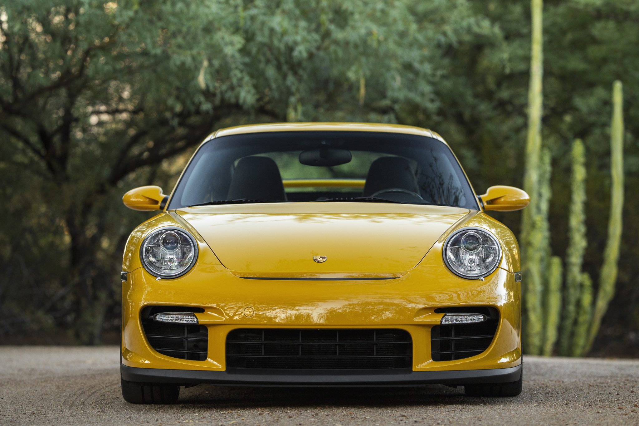 Factory 19″ wheels feature black centers with polished lips and wear staggered-width Michelin Pilot Sport Cup 2 tires with 2018 date codes. The GT2 rode an inch lower than the contemporary 911 Turbo and featured stiffer damper and spring rates as well as Porsche Stability Management and Porsche Active Suspension Management. Standard Porsche Ceramic Composite Brakes feature yellow six- and four-piston calipers over cross-drilled 15″ rotors in the front and 13.4″ versions in the rear.