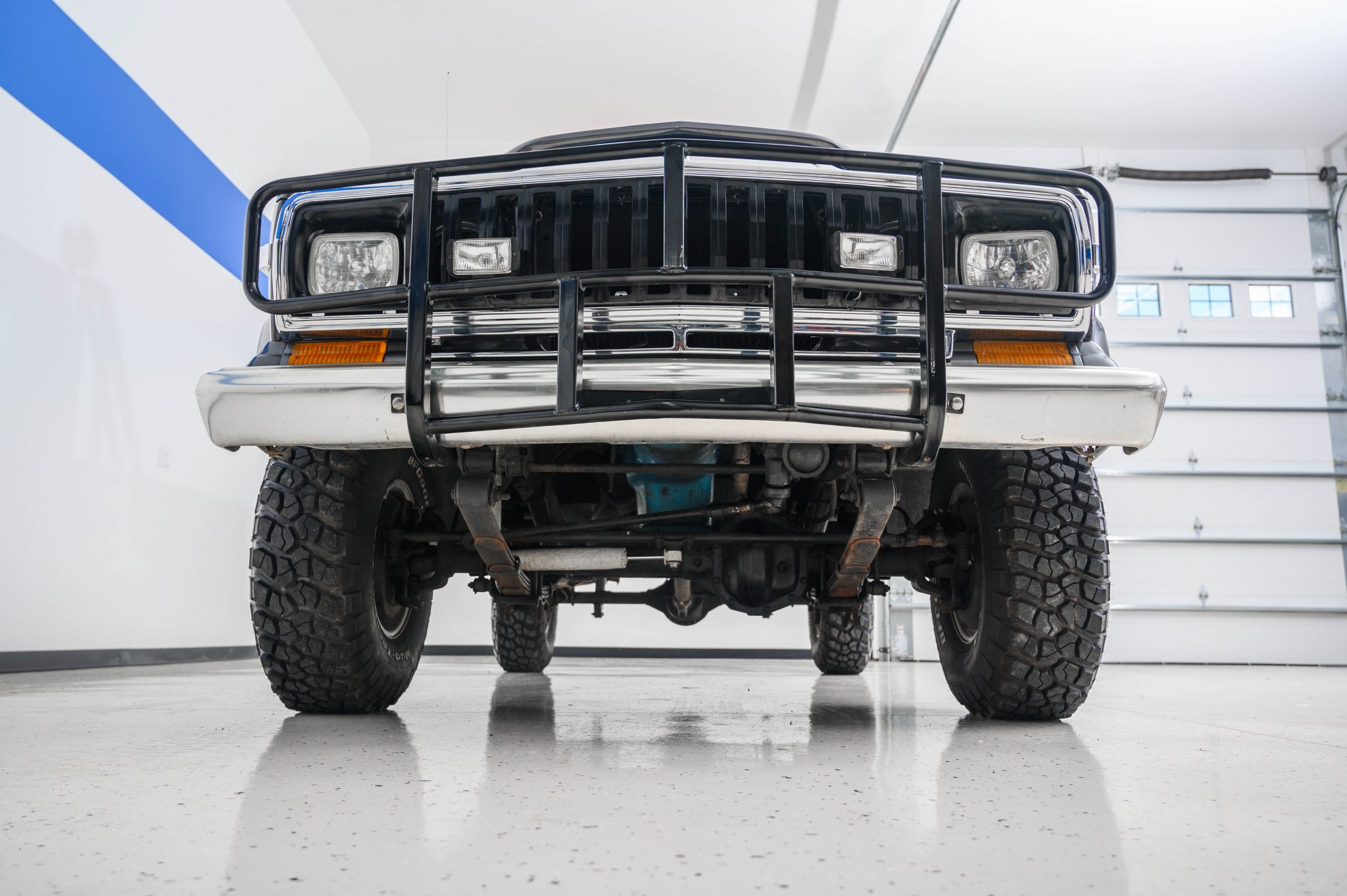 A 2″ lift accommodates 15″ alloy wheels wearing 33″ BFGoodrich Mud-Terrain T/A KM2 tires. Manually-locking front hubs are equipped.