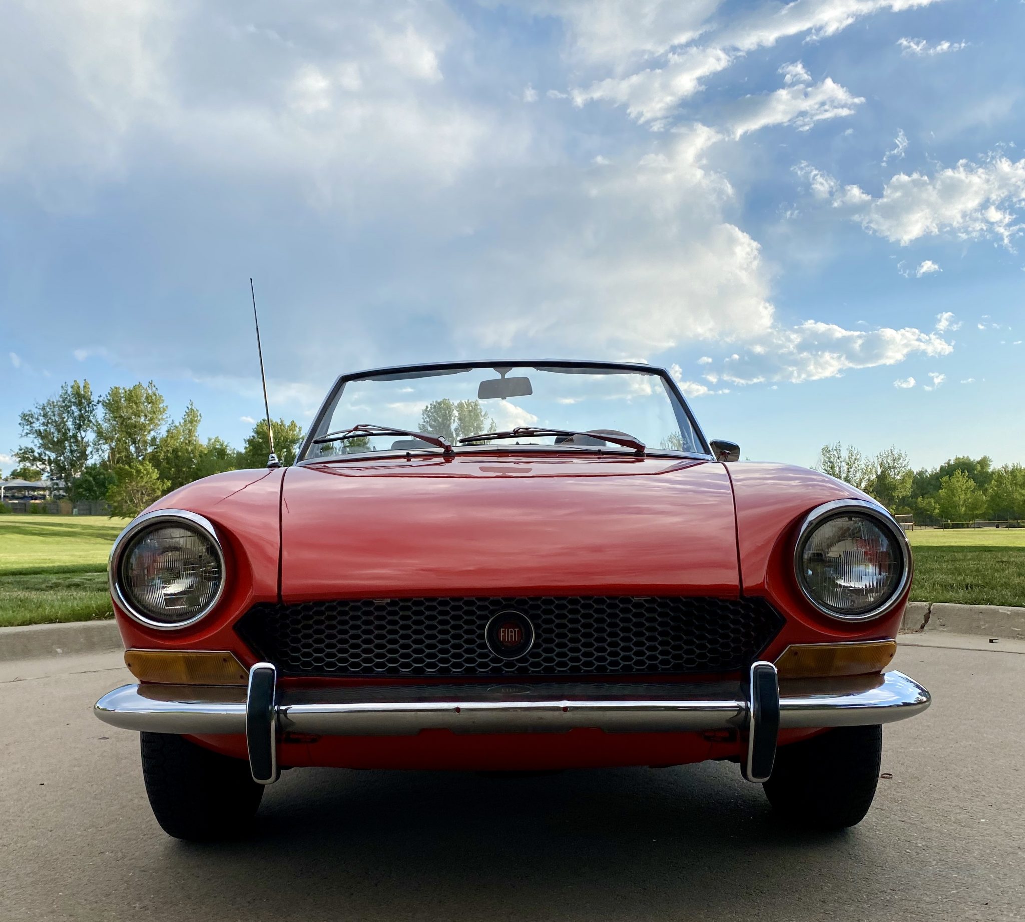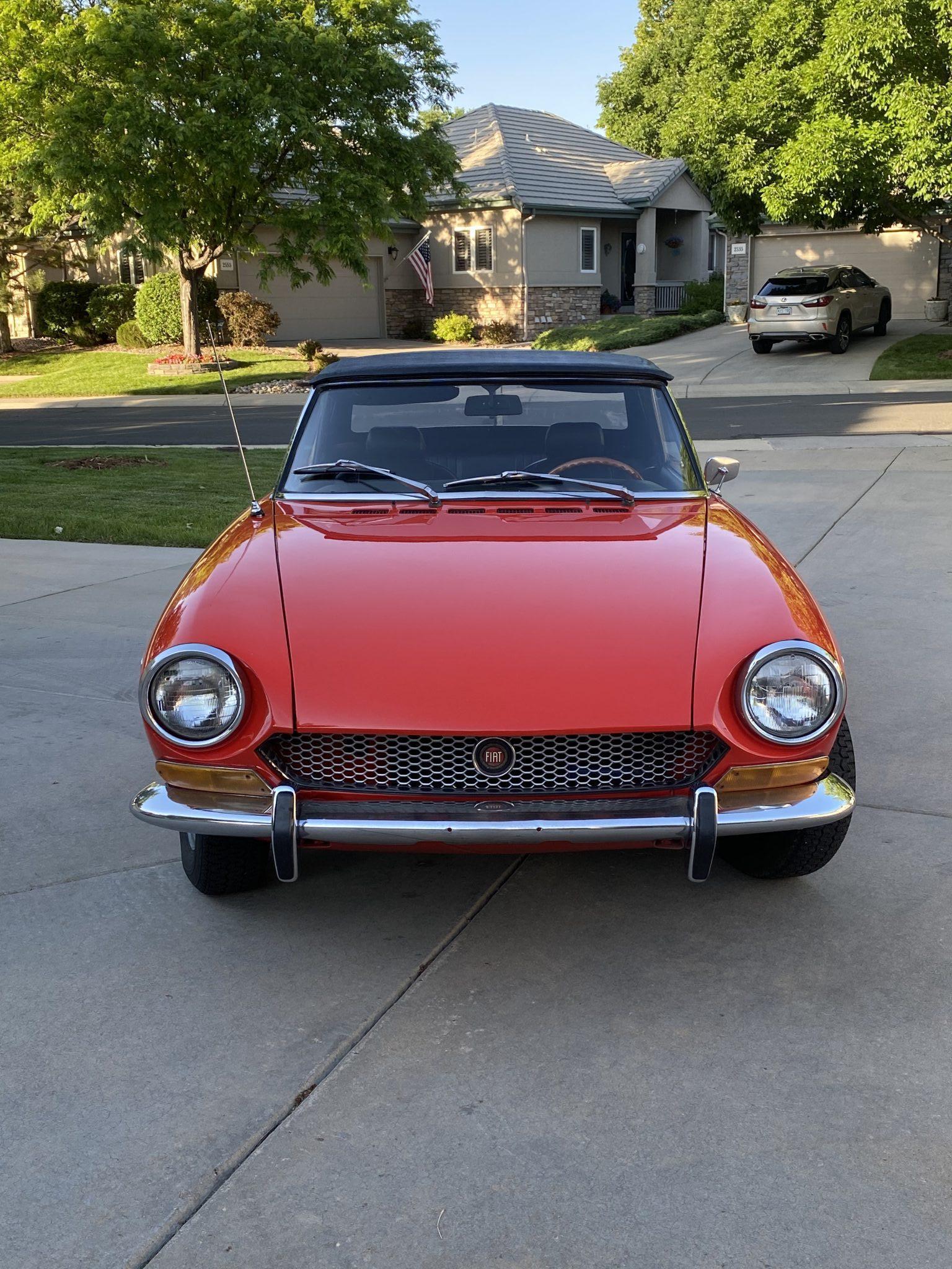 The 13″ steel wheels wear polished hubcaps and 165SR Michelin XZX tires. Five Cromodora wheels with Fiat center caps are included in the sale.