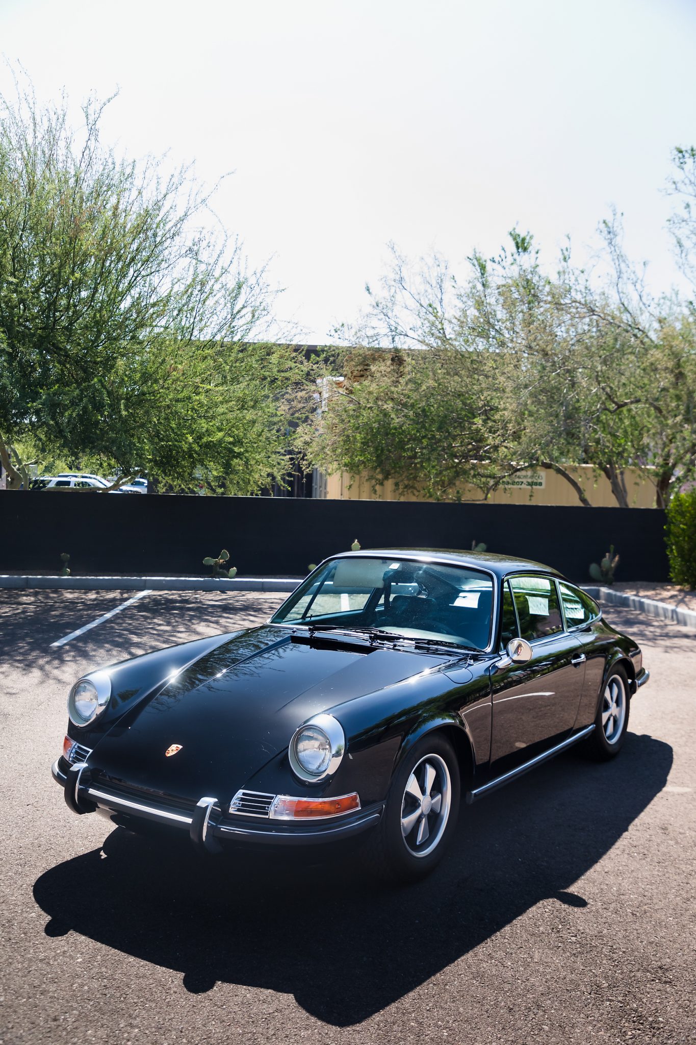 The 15×6” Fuchs alloy wheels were refurbished in 2017, and 185/70 Michelin XWX tires were mounted at that time. A refresh of the suspension system was performed in 2018 by Don Jackson Enterprises of Phoenix, Arizona. Work included replacing the Koni shock absorbers, Koni strut inserts, control arm bushings, spring plate bushings, and trailing arm bushings. An exterior walk-around video can be viewed here.