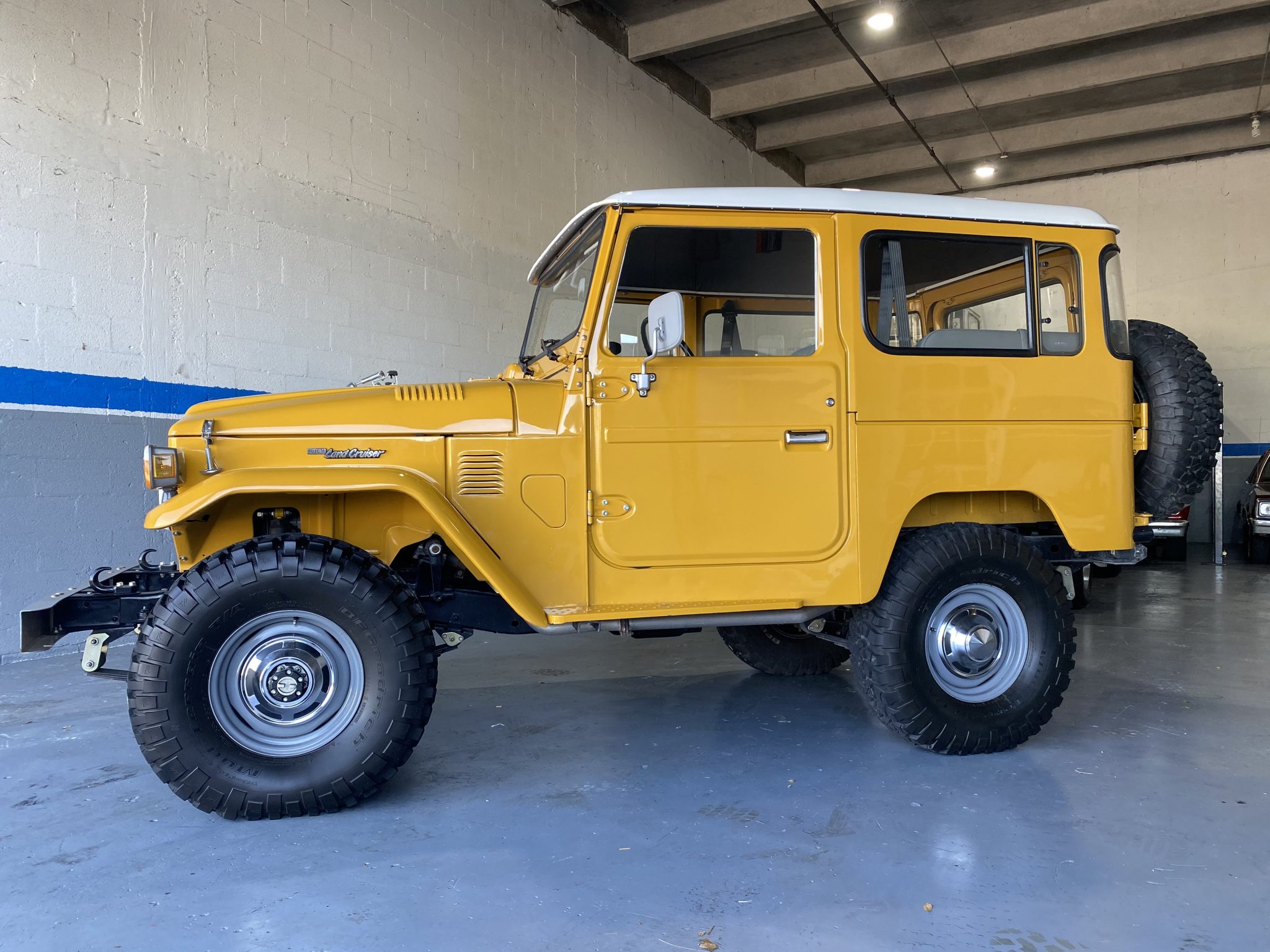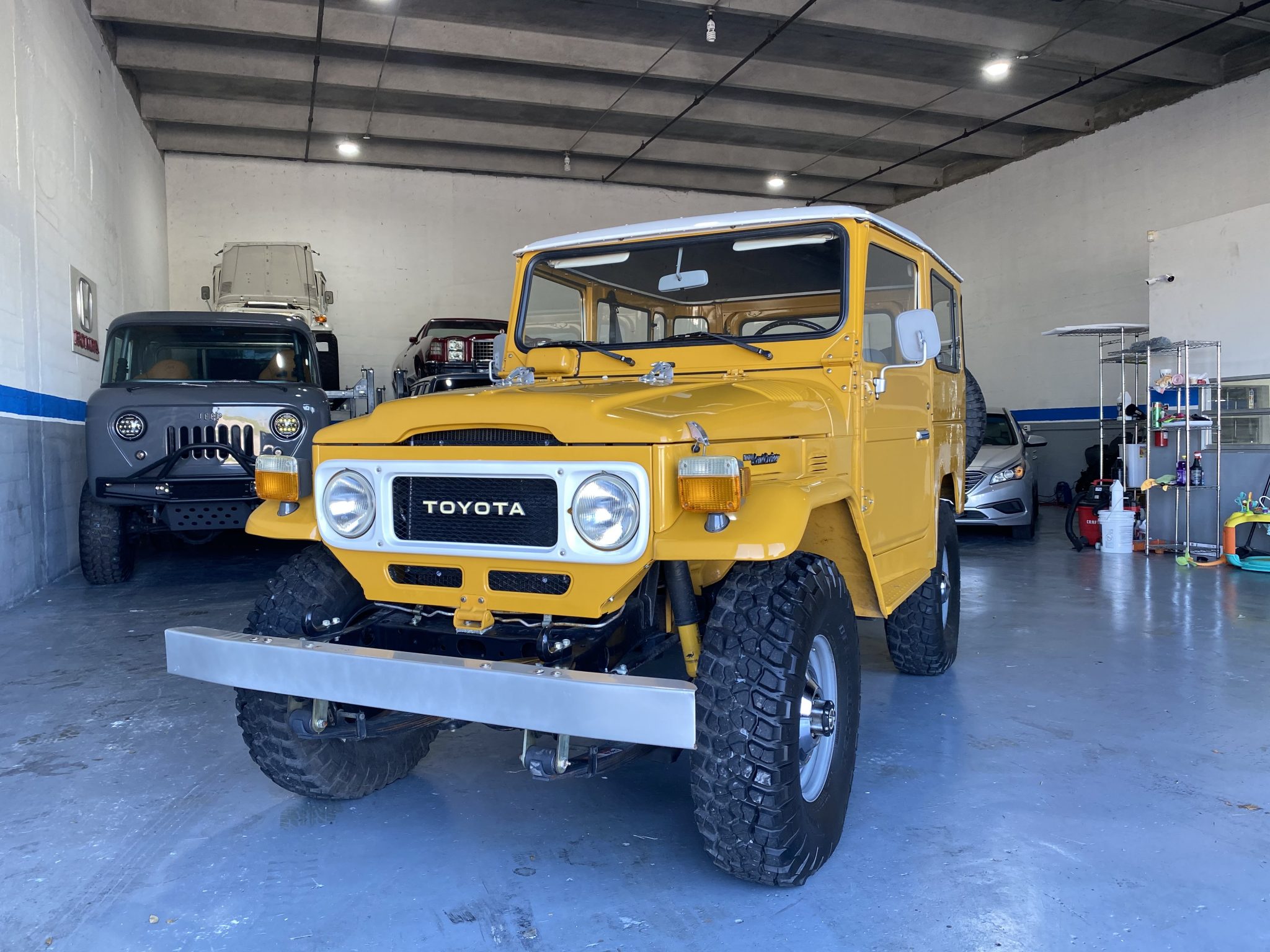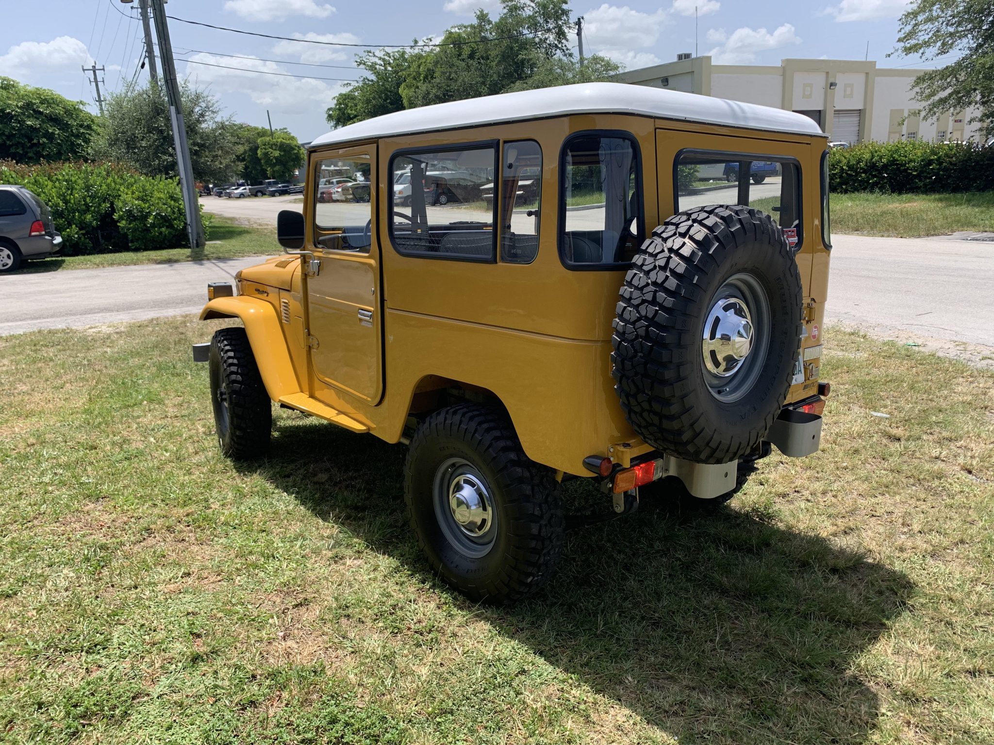 Gray-painted 15″ steel wheels wear 33×10.5″ BFGoodrich Mud-Terrain tires that were reportedly mounted around 2018, and a matching full-size spare is affixed to the swing-out rear carrier. An Old Man Emu steering stabilizer and shocks have been added.