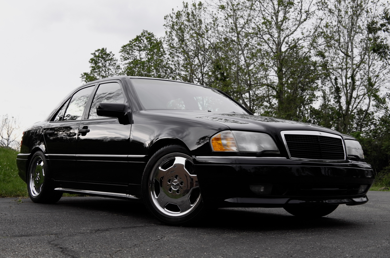 Chrome-finished 17″ AMG Monoblock wheels were recently fitted with Michelin Pilot Sport A/S 3+ tires measuring 225/40 front and 245/40 rear. The C36 AMG features a faster steering ratio than its contemporary C-Class models, as well as stiffer anti-roll bars and shocks.