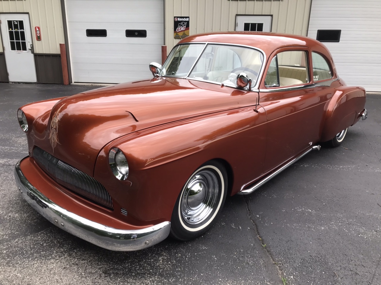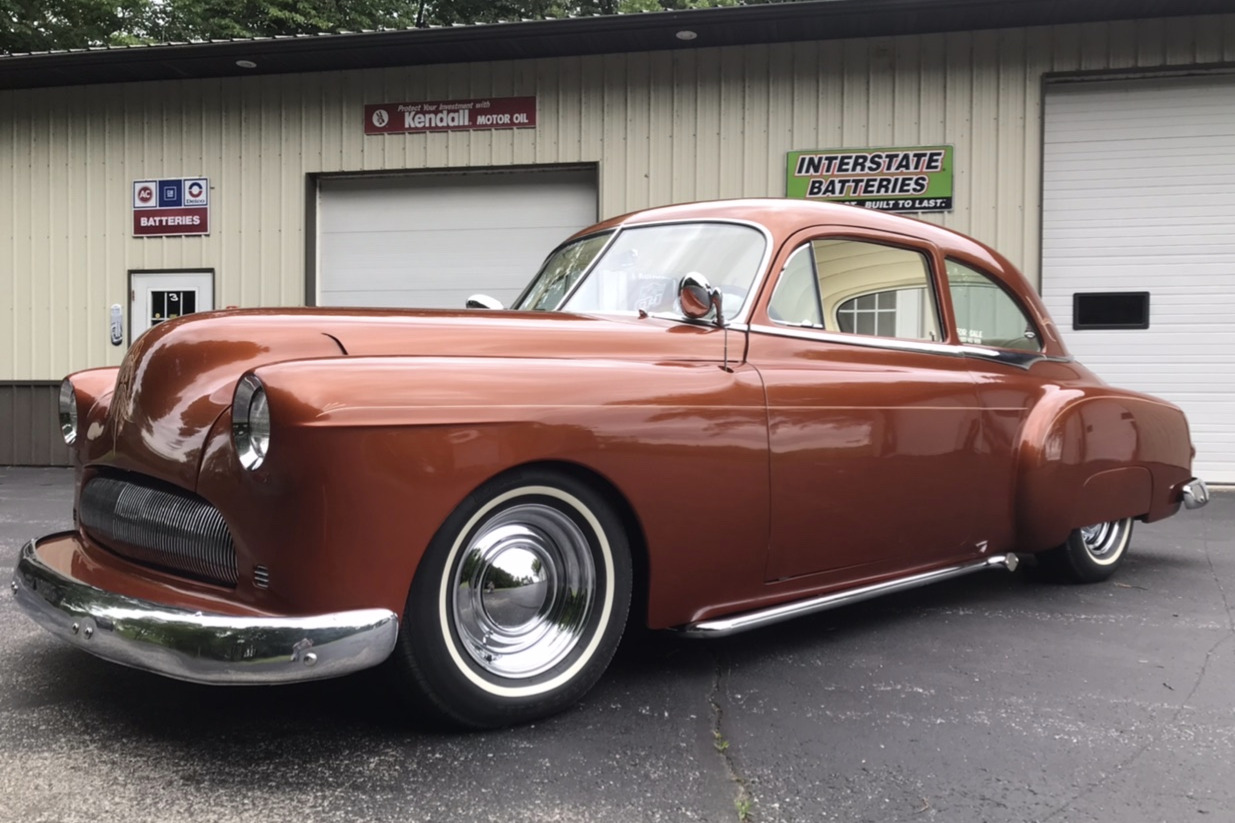 Steel wheels wear chrome hubcaps and whitewall tires. A full-size spare featuring a Dayton whitewall tire is fitted in the trunk.