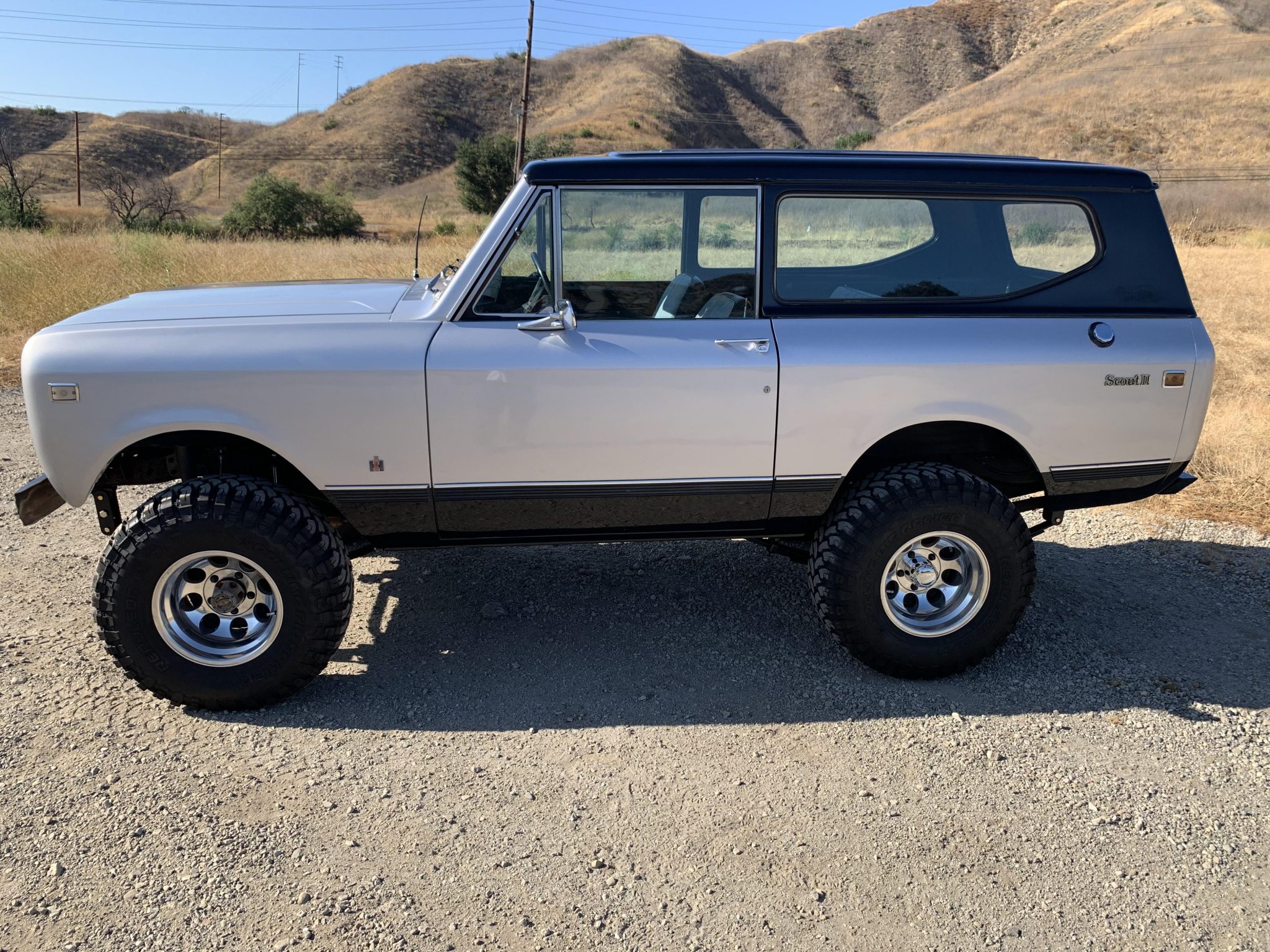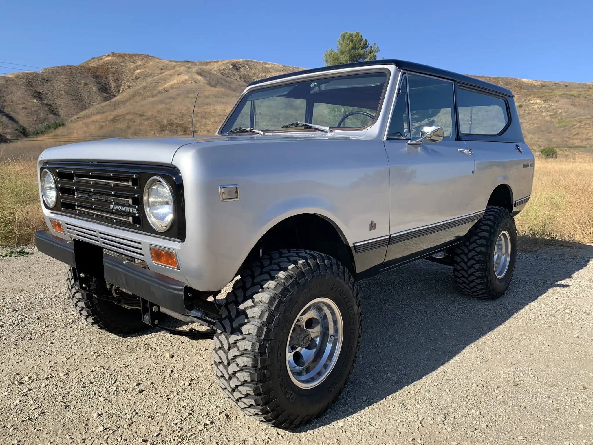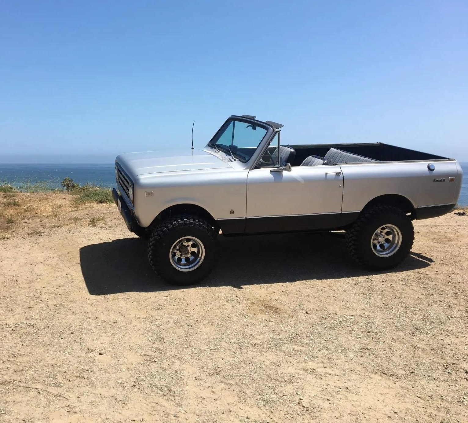 Polished 15″ alloy wheels are wrapped in 33×12.5″ Rolling Big Power Repulsor M/T tires. Body mount bushings and hardware have reportedly been replaced, and modifications include a 4″ Rough Country lift, N2 shocks, 5″ leaf spring shackles, and a steering stabilizer mounted to the front axle. Braking is handled by four-wheel drums, and extended-length braided brake lines are fitted.