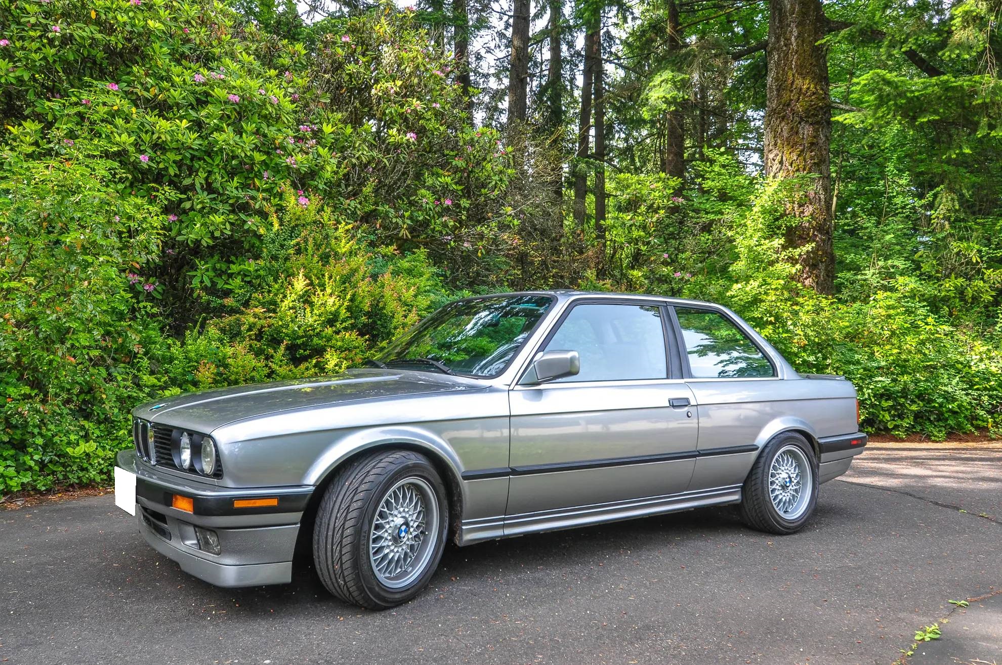BBS RZ 15″ basketweave wheels are fitted with 205/55 Yokohama S.drive tires. Suspension modifications include Bilstein shocks and H&R Sport springs, and Lemforder control arms and tie rod assemblies with E36 M3 solid offset control arm bushings and replacement wheel bearings were also fitted. Cross-drilled Zimmerman brake rotors and Textar brake pads were installed at each corner, and the parking brake shoe and cables were also replaced.