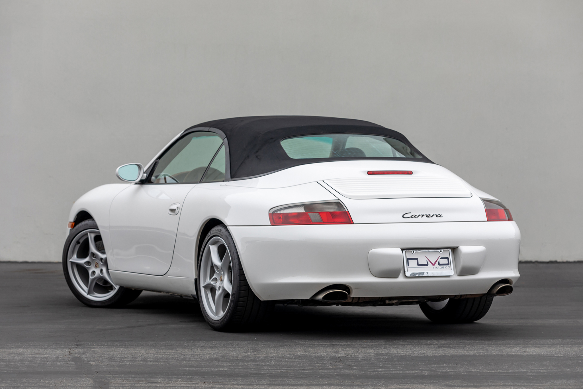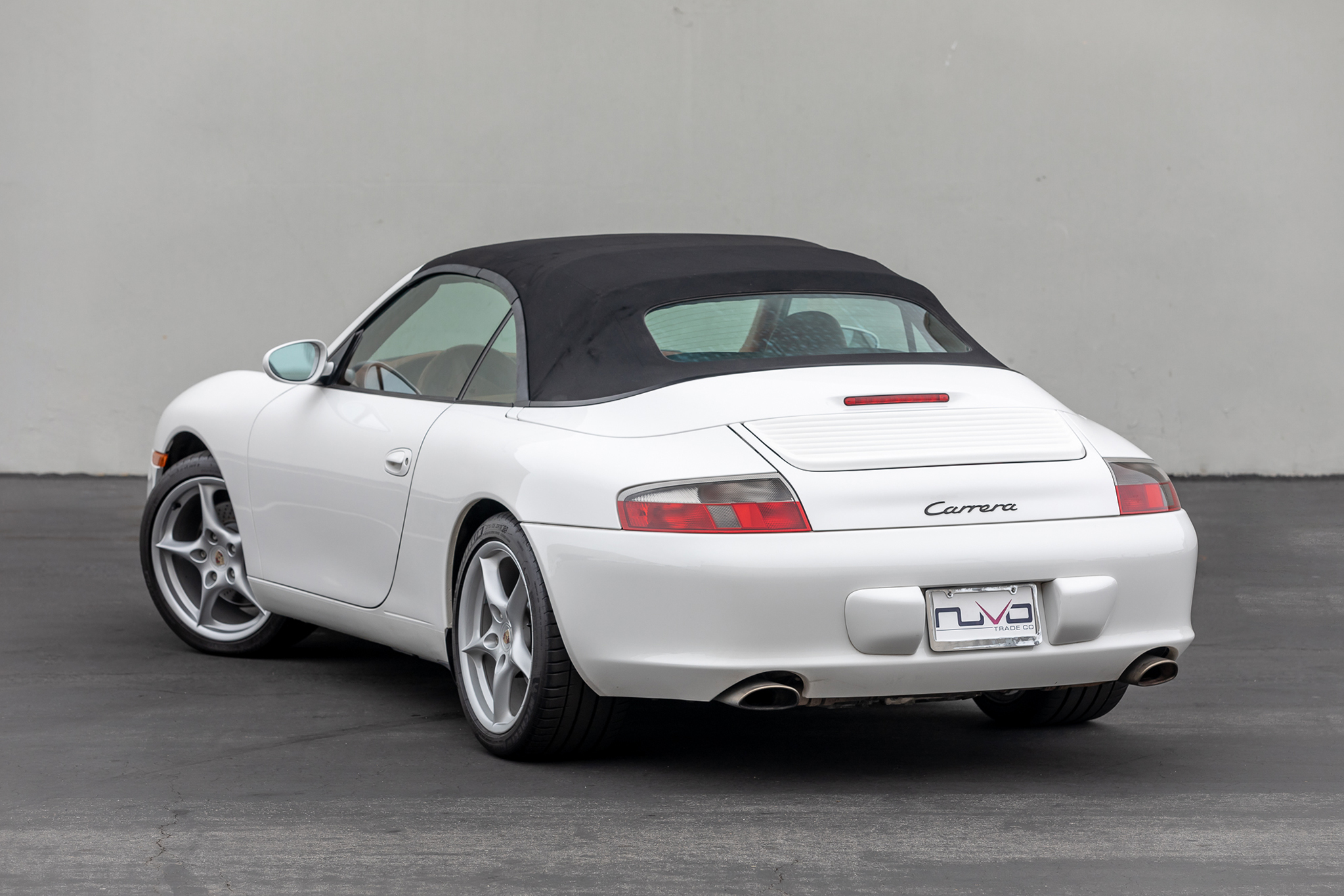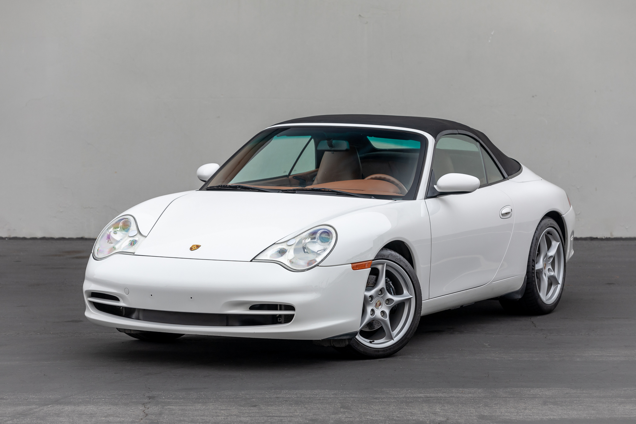 Factory-optioned 18″ Carrera wheels wear center caps with colored Porsche-crest center caps and are mounted with staggered-width Michelin Pilot Sport 4S tires. Braking is handled by four-wheel cross-drilled and vented discs with black-finished calipers.