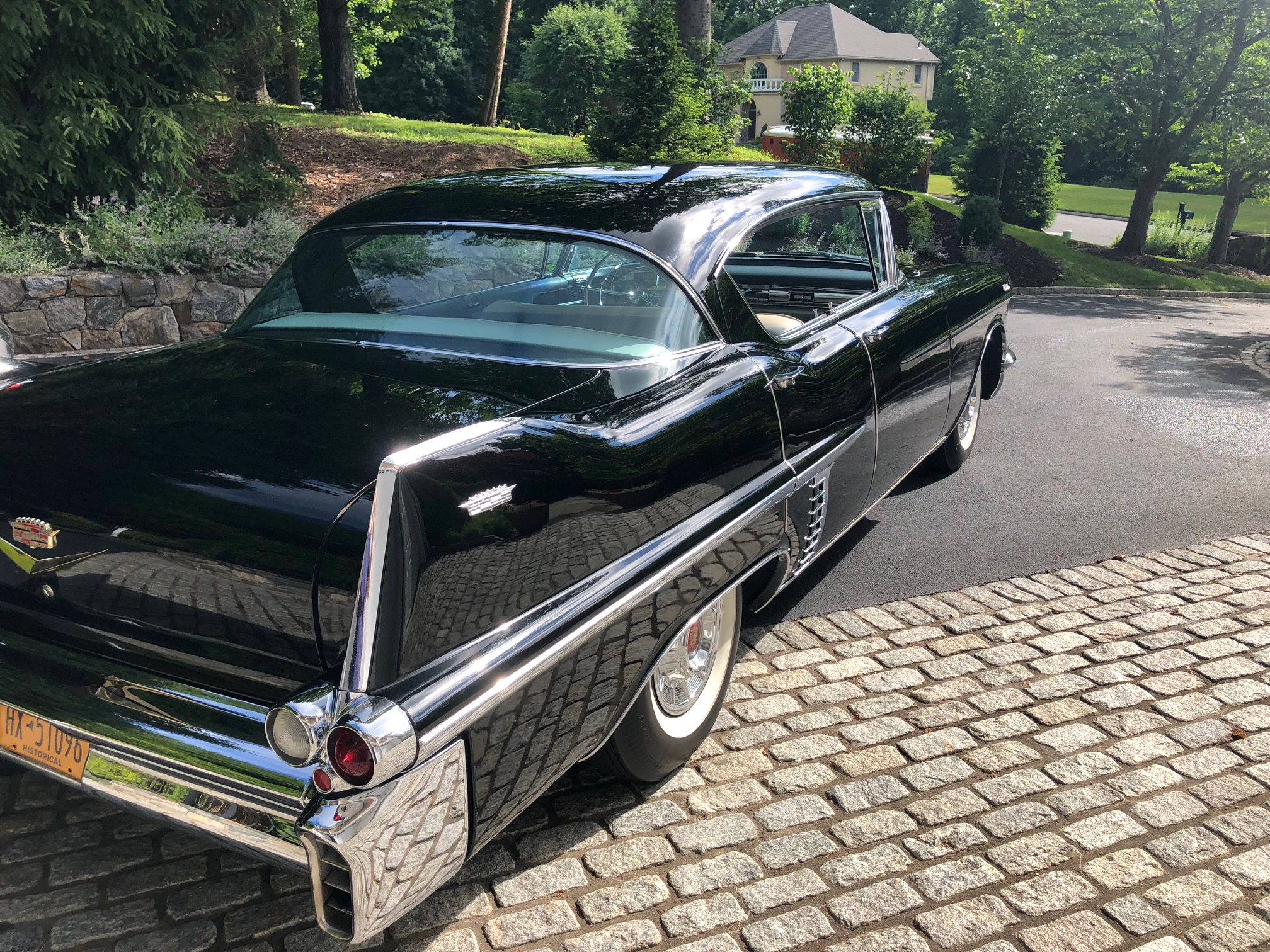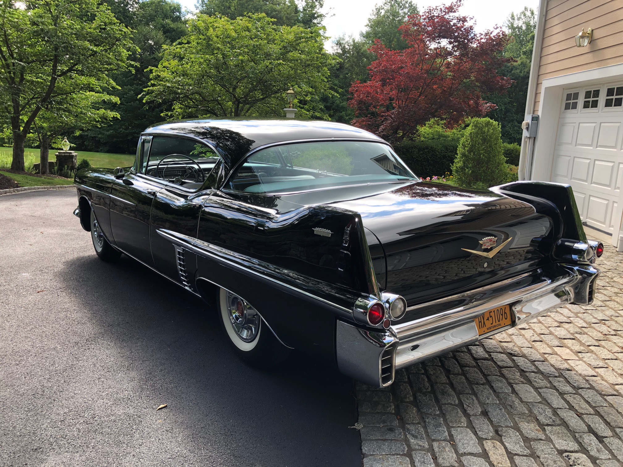 15″ steel wheels with chrome covers featuring the Cadillac crest are fitted with US Royal Safety 800 whitewall tires.
