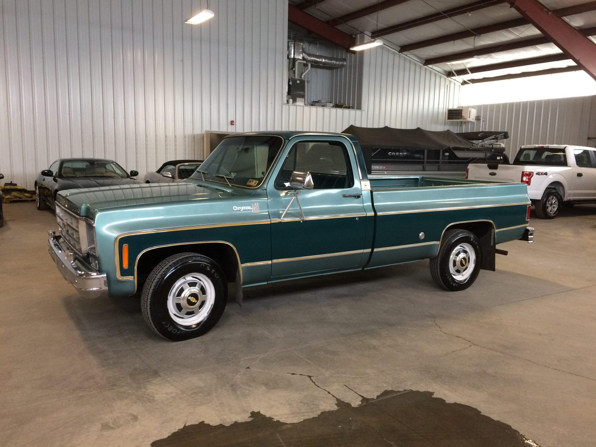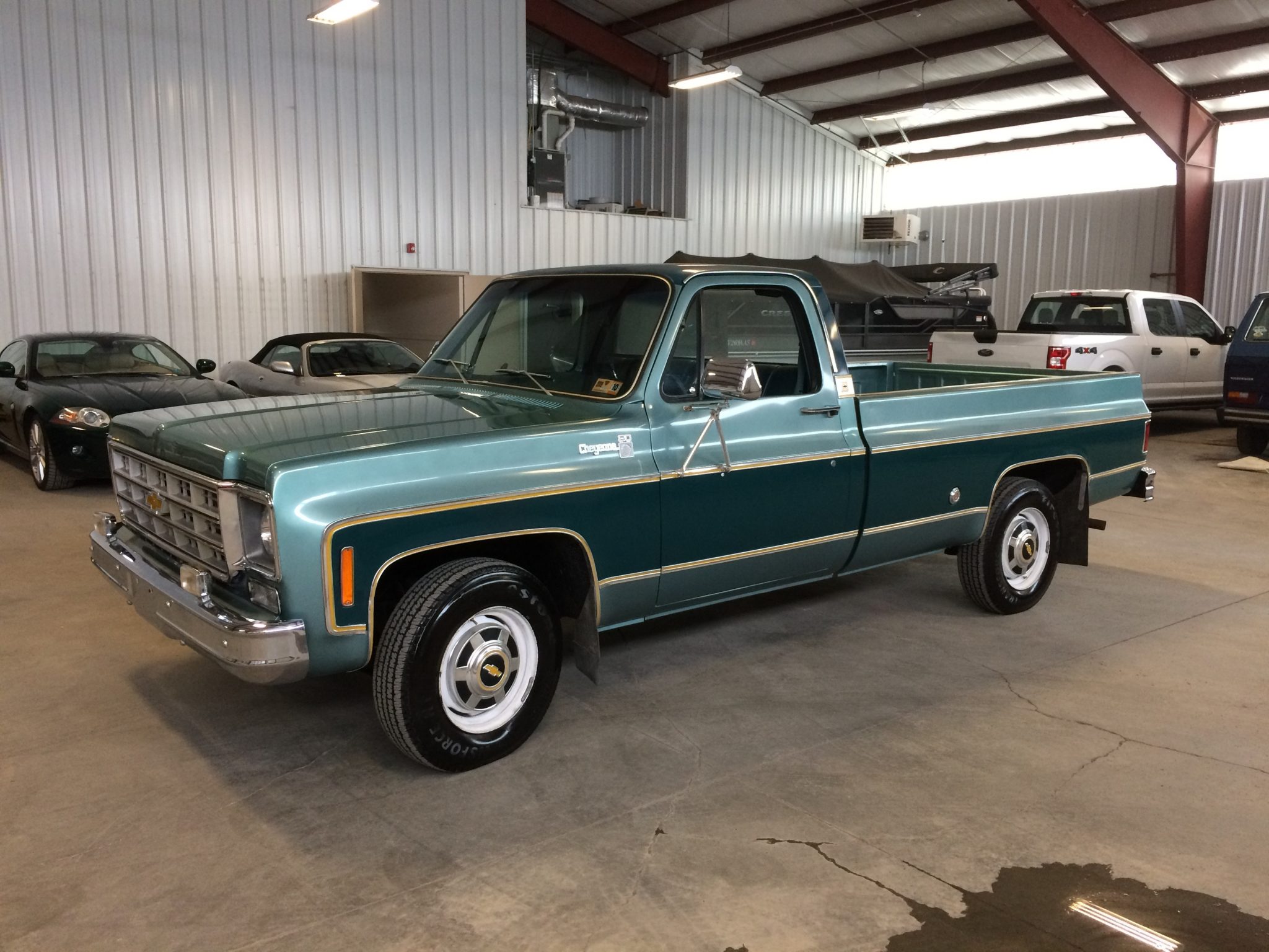 White 16.5″ steel wheels wear stock bowtie hubcaps and Firestone Transforce HT tires that were installed within the last year according to the selling dealer. The truck is equipped with an independent front suspension system and power-assisted brakes.