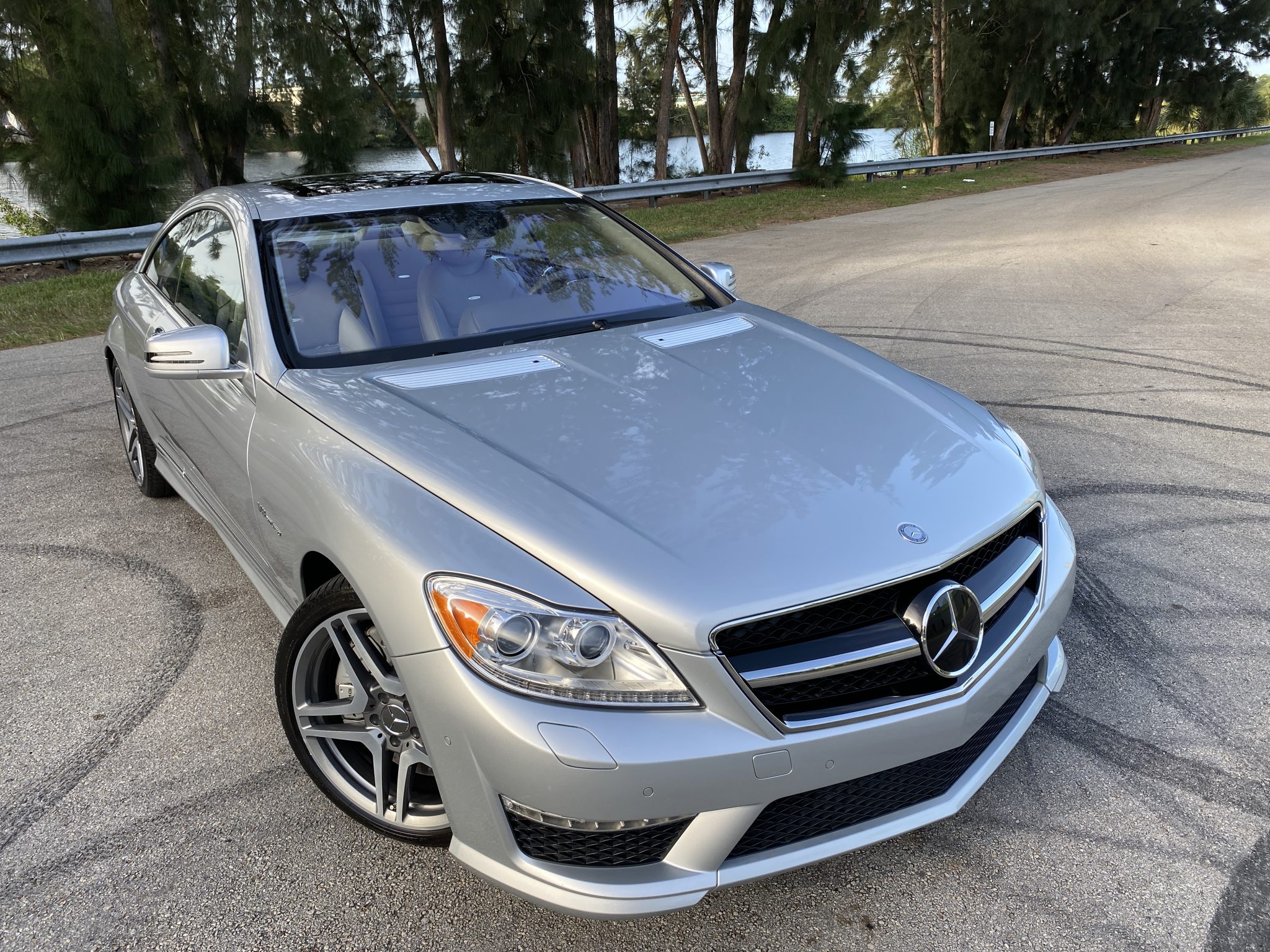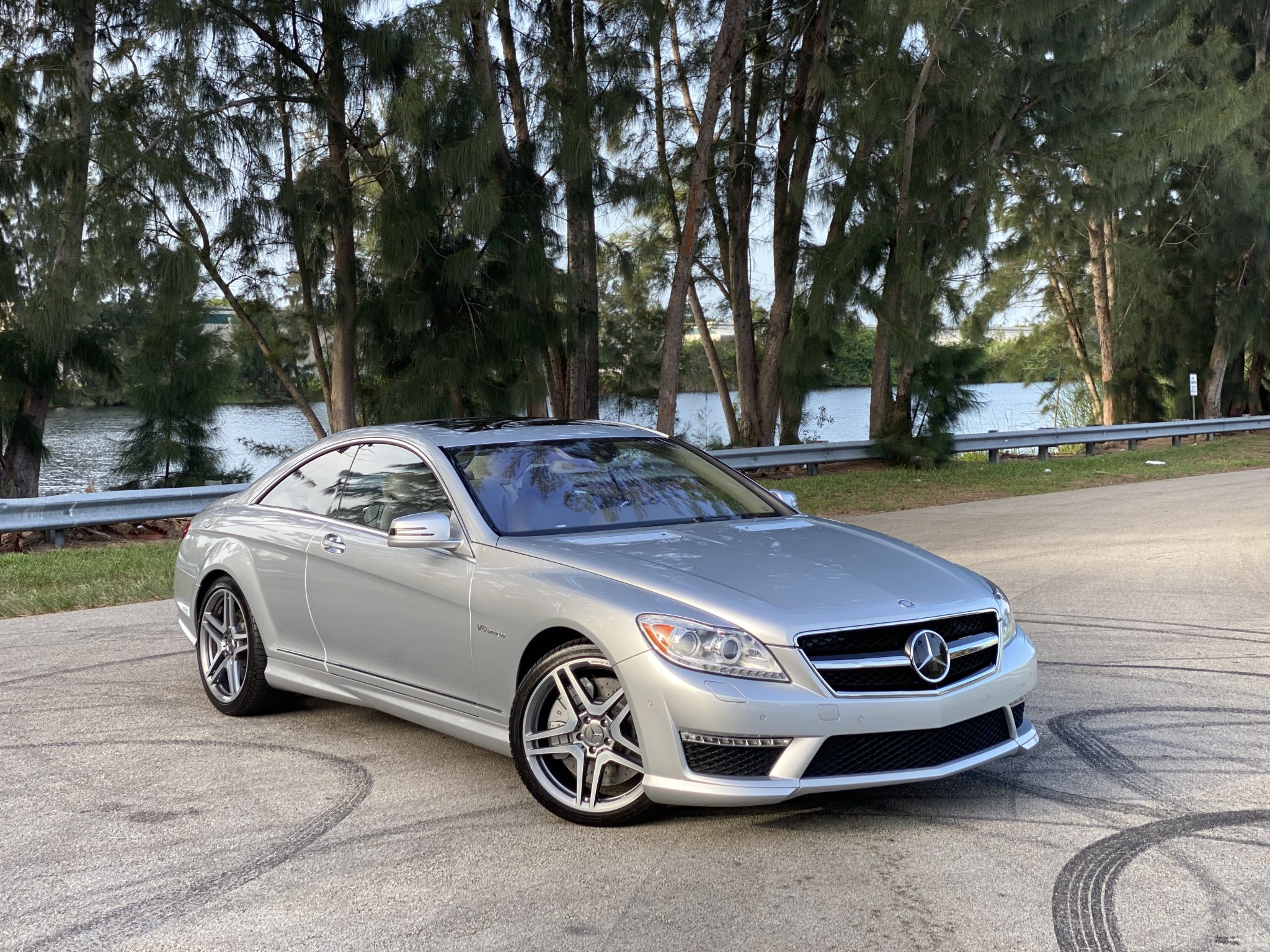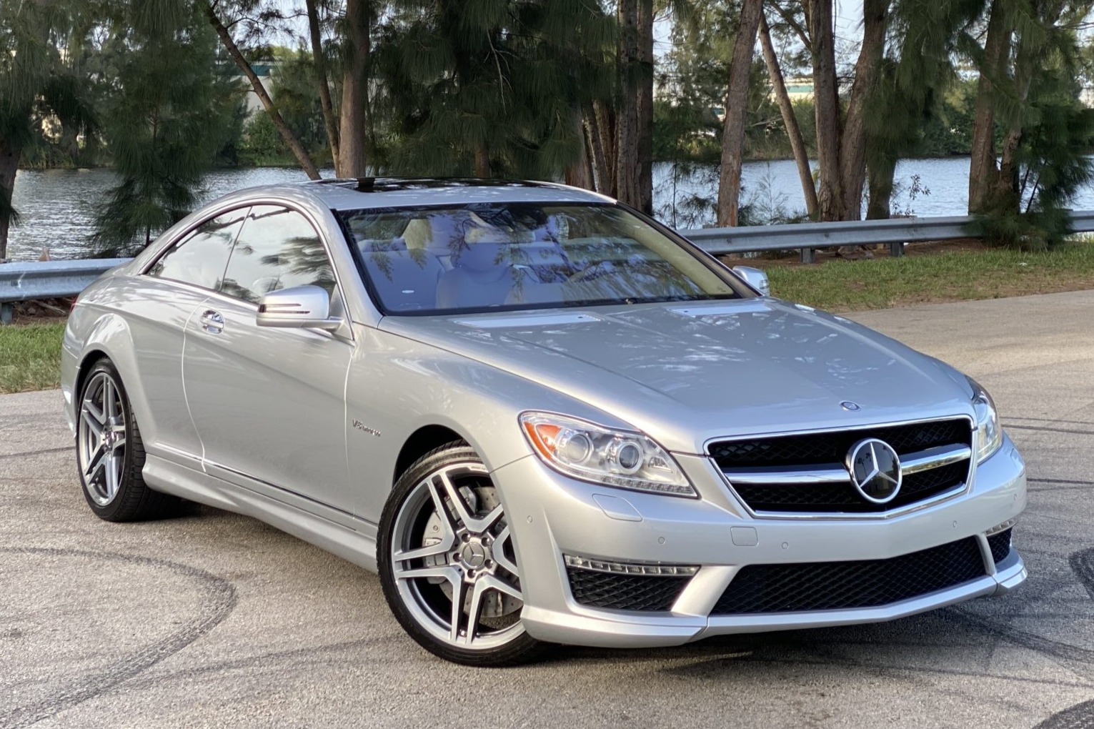 Optional 20″ twin five-spoke forged wheels are wrapped in Michelin Pilot Sport A/S 3+ tires measuring 255/35 up front and 275/35 out back. Active Body Control suspension is standard, and braking is handled by AMG-logo multi-piston calipers with cross-drilled rotors at each corner.